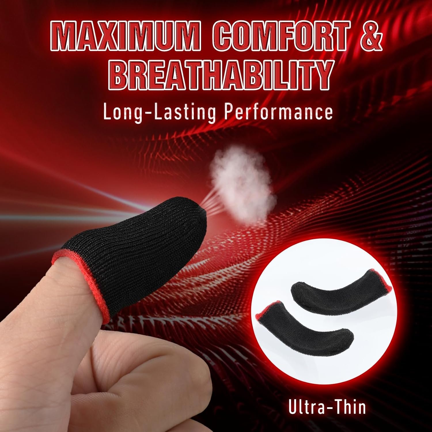 【Breathable and Sweatproof】The thickness of gaming thumb sleeveis 0.2mm, which is ultra-thin, breathable and lightweight. The finger sleeves for gaming fit your fingers tightly without feeling too tight or uncomfortable, giving you highly sensitive operation and comfortable gaming experience