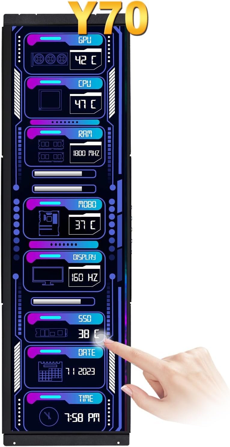 What You Get: 1*High quality 2K touch monitor for Hyte Y70, 1*Type-A to Type-C cable, 1*Type-C to Type-C cable, 1*HDMI to mini HDMI cable, 1 year warranty and 7/24H customer support.