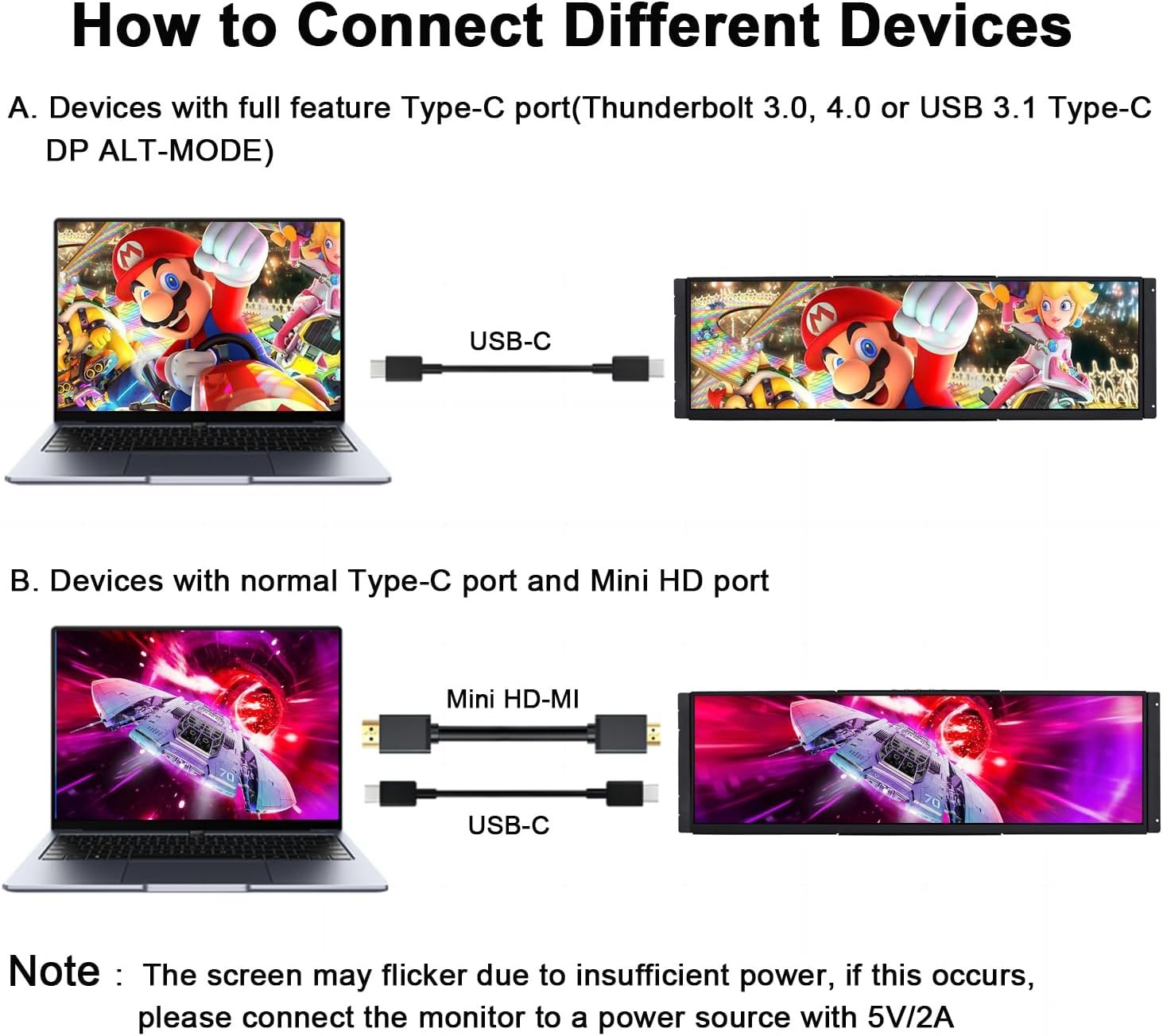 2K High Resolution: This second monitor features a 2K 2560×720 screen, delivers a vivid image, clear motion and crisp details. 100%sRGB, contrast ration 1500:1, 60Hz refresh rate, brings smooth visual experience.