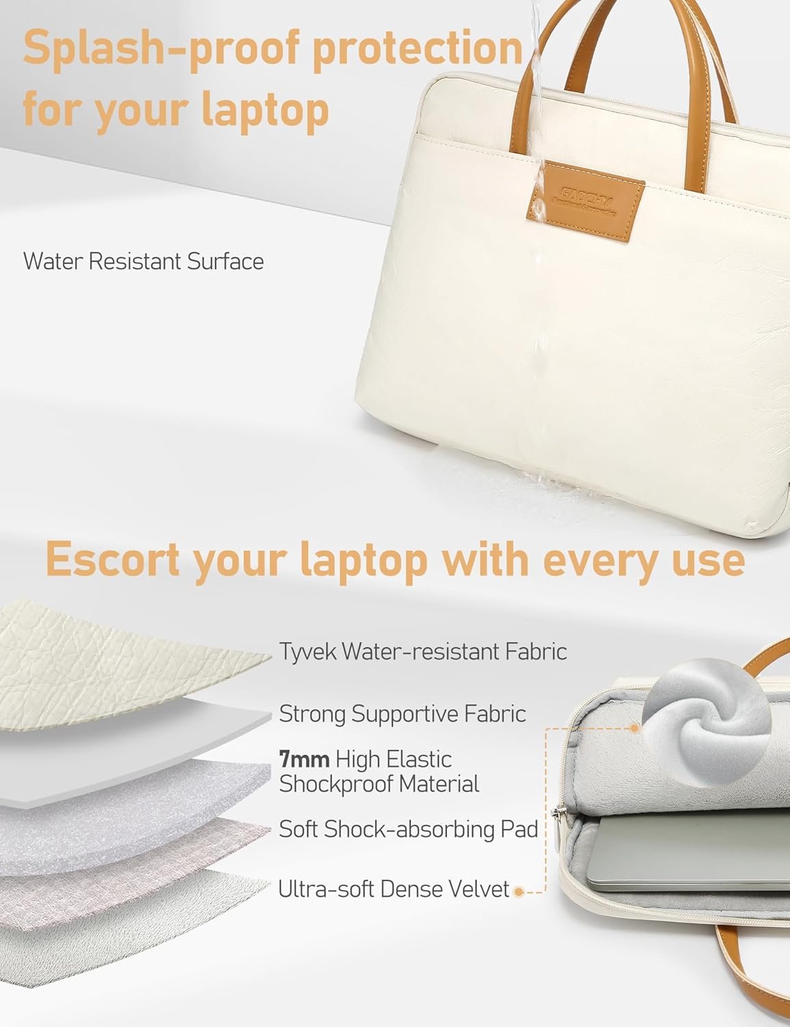 Unique & Non-Polluting: Tyvek used in this laptop bag is water-resistant and abrasion-resistant, which is a high-value recyclable material, which is non-toxic and will not cause any burden to the environment