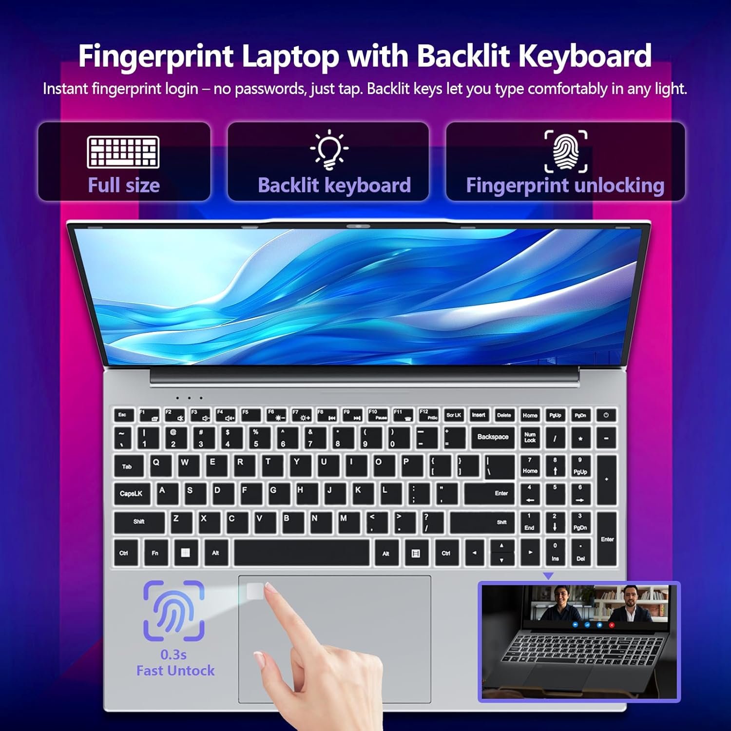 Secure & Convenient Features: Fingerprint unlock ensures quick access, while the backlit keyboard enhances usability in dim environments, greatly improve work efficiency—great for college students, or professionals needing a secure laptop computer. A standout among perfect laptops for college students and budget laptop options.