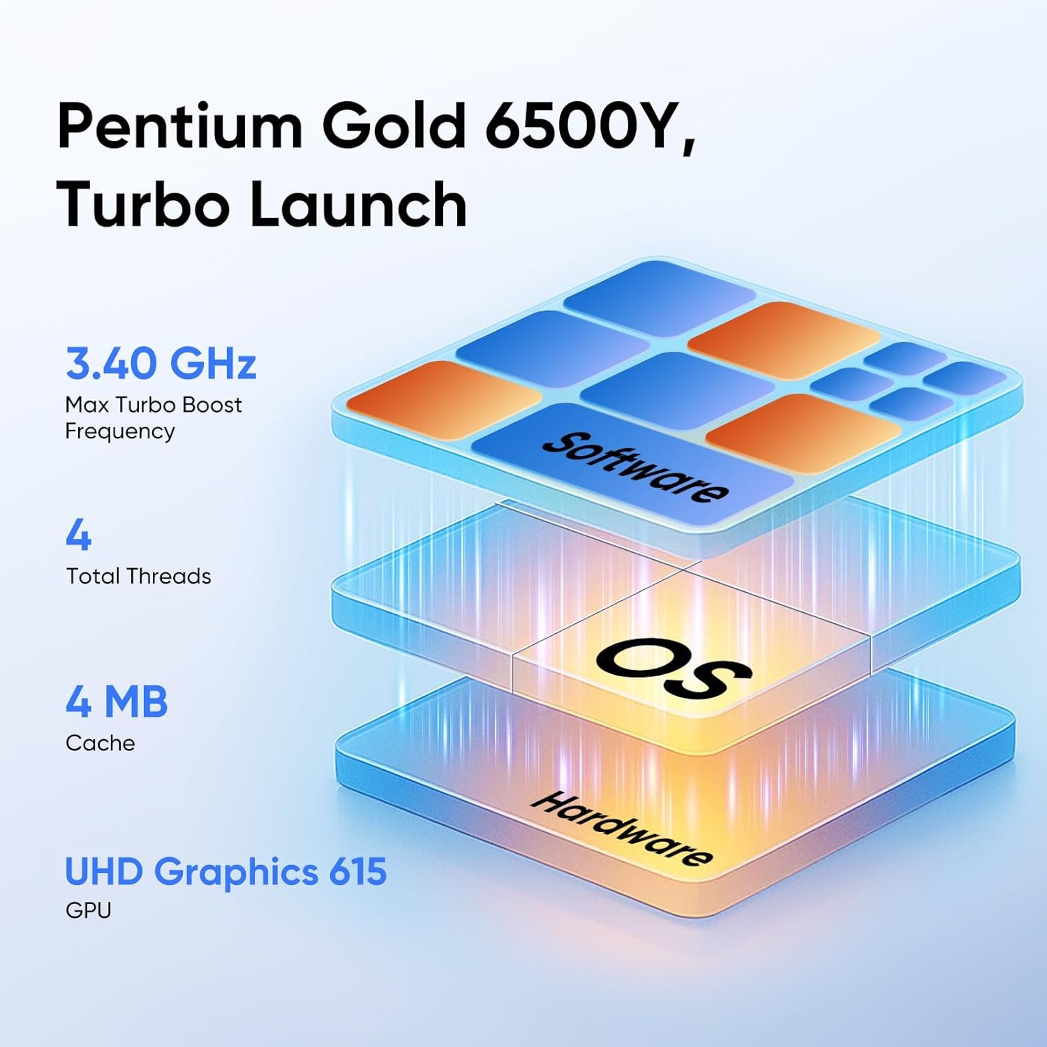 EFFICIENT PROCESSOR: Intel Pentium Gold 6500Y (2 cores/4 threads, up to 3.4GHz Turbo) with Intel UHD Graphics 615