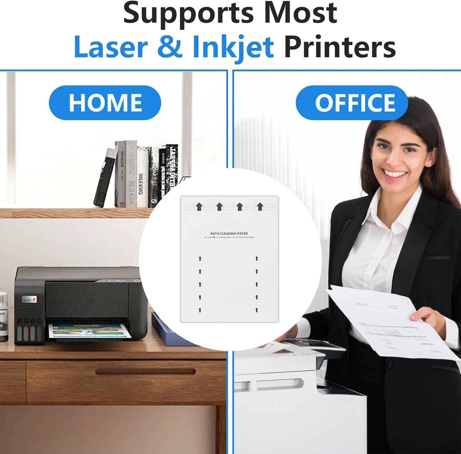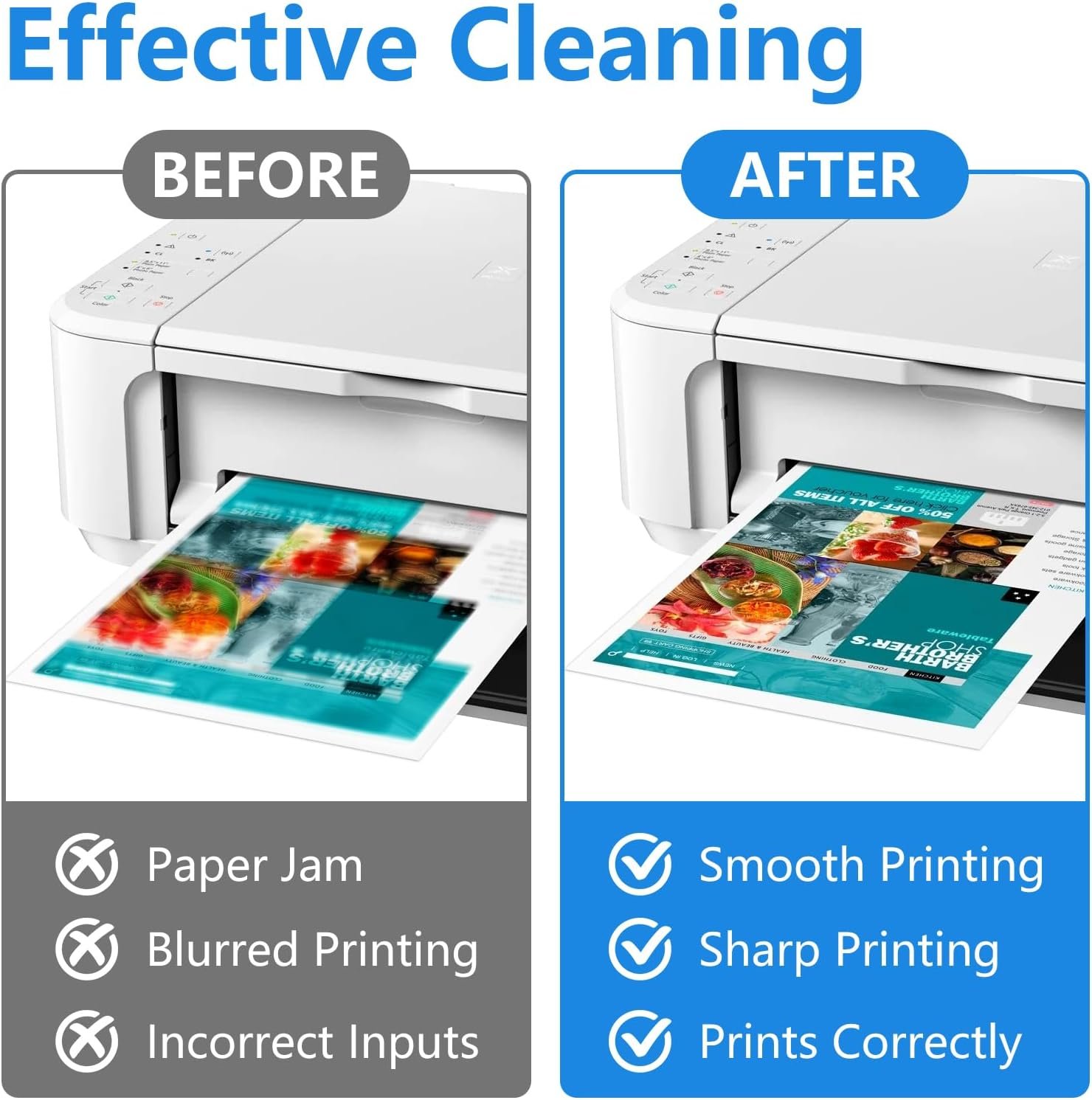 [PRINTER CLEANING SHEETS] Printer roller cleaning sheets is designed for cleaning printer rollers, size of 8.5 x 11 inches. Printer roller cleaner sheets can be widely used in most office or home printing devices, including inkjet and laser printers, to extend the life of the printer.