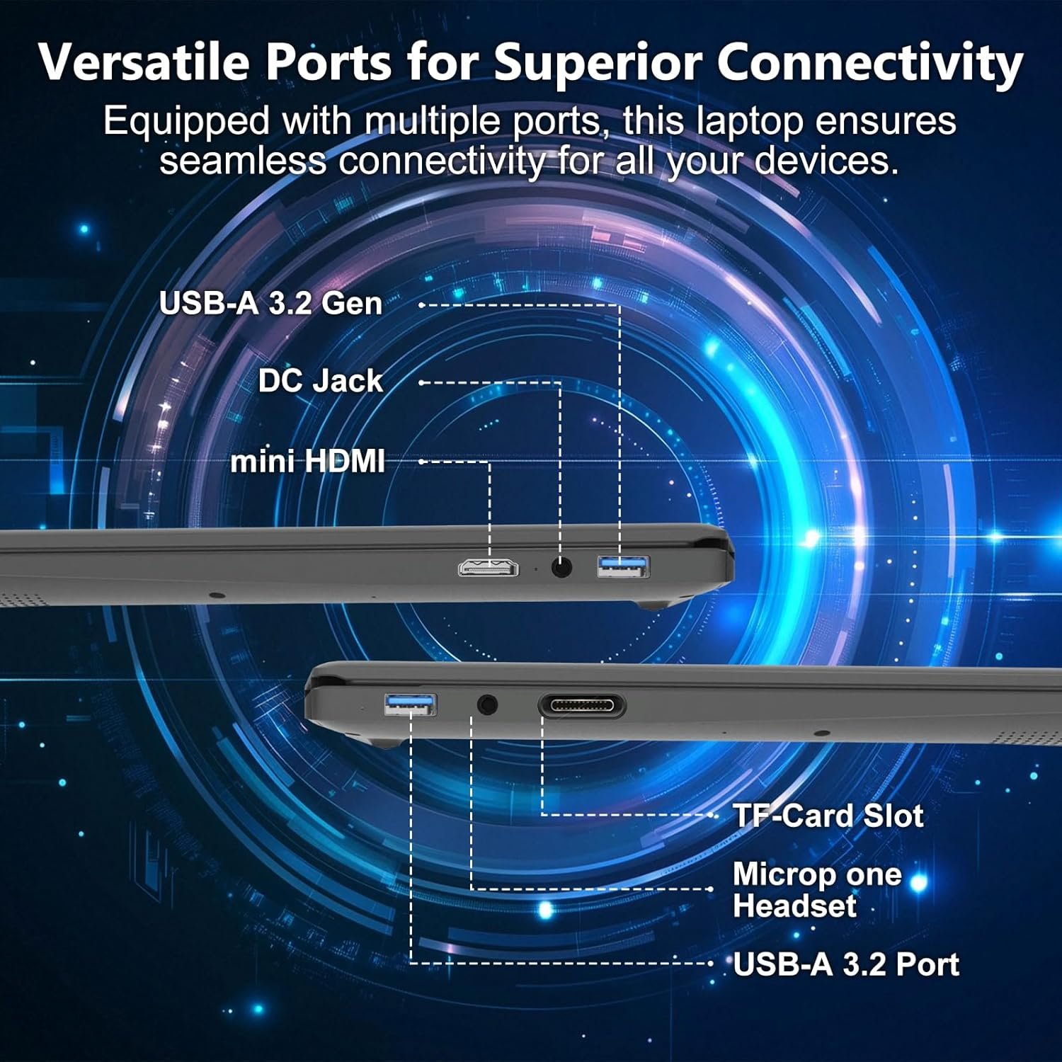 【Reliable Connectivity Options】 Stay connected with integrated Wi-Fi, Bluetooth 5.0, mini HDMI, and USB 3.2 ports. This laptop is designed to adapt to modern demands, making it a dependable partner for work, study, and entertainment.