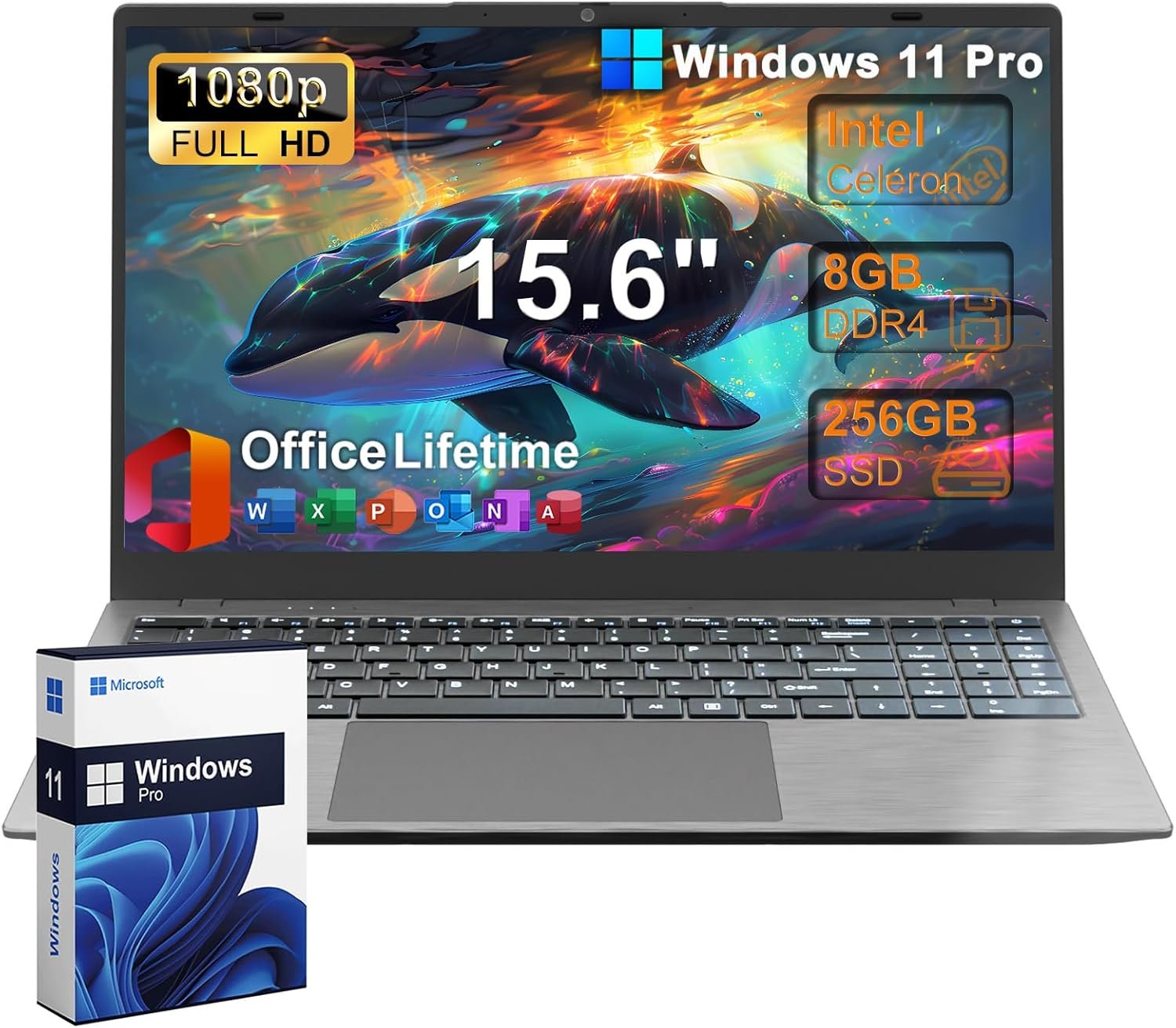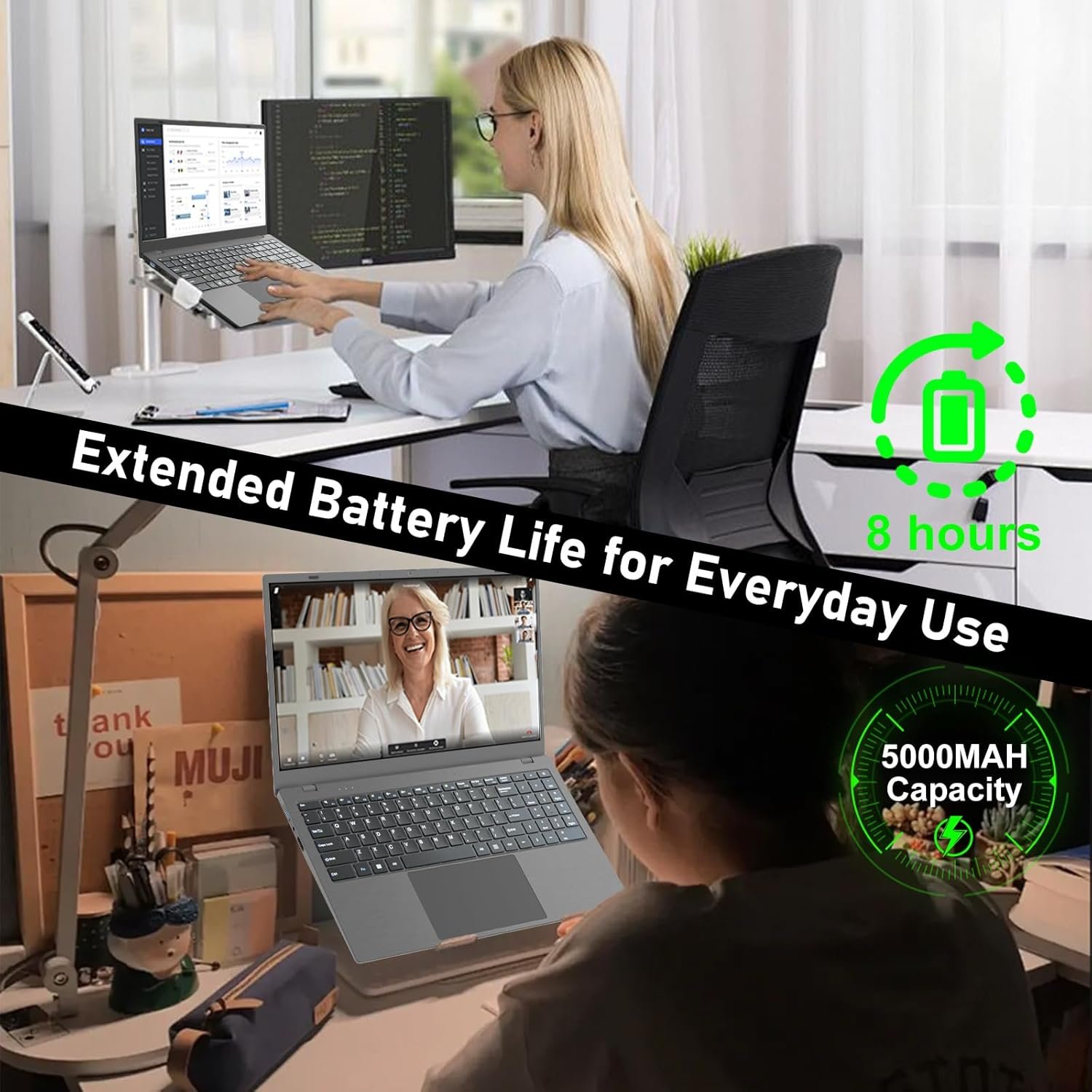 【Efficient Performance】 Powered by a Dual-Core Intel Celeron processor, the Gina Joyfurno 15.6-Inch FHD Laptop is built to effortlessly handle everyday tasks. Whether for work, school, or office use, its sleek, lightweight design supports smooth multitasking for students and professionals alike.