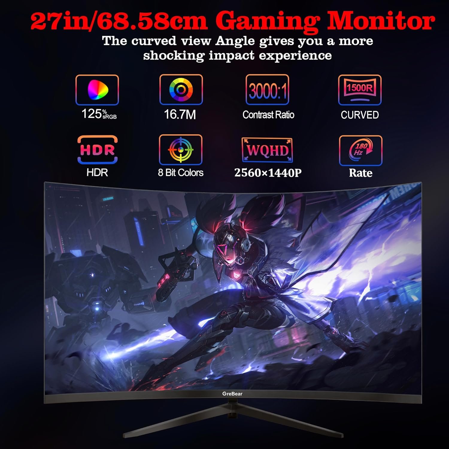Symphony of Brilliance and Performance: Elevate your visual experience with GreBear’s 14400p 27-inch computer monitor. The advanced IPS screen delivers QHD 1080p resolution, boasting 125% sRGB, 300cd/m² brightness, 8-bit color depth, and a vast 16.7 million color gamut. Immerse yourself in deeper, more defined colors for stunningly clear, bright, and vivid images with intricate details.