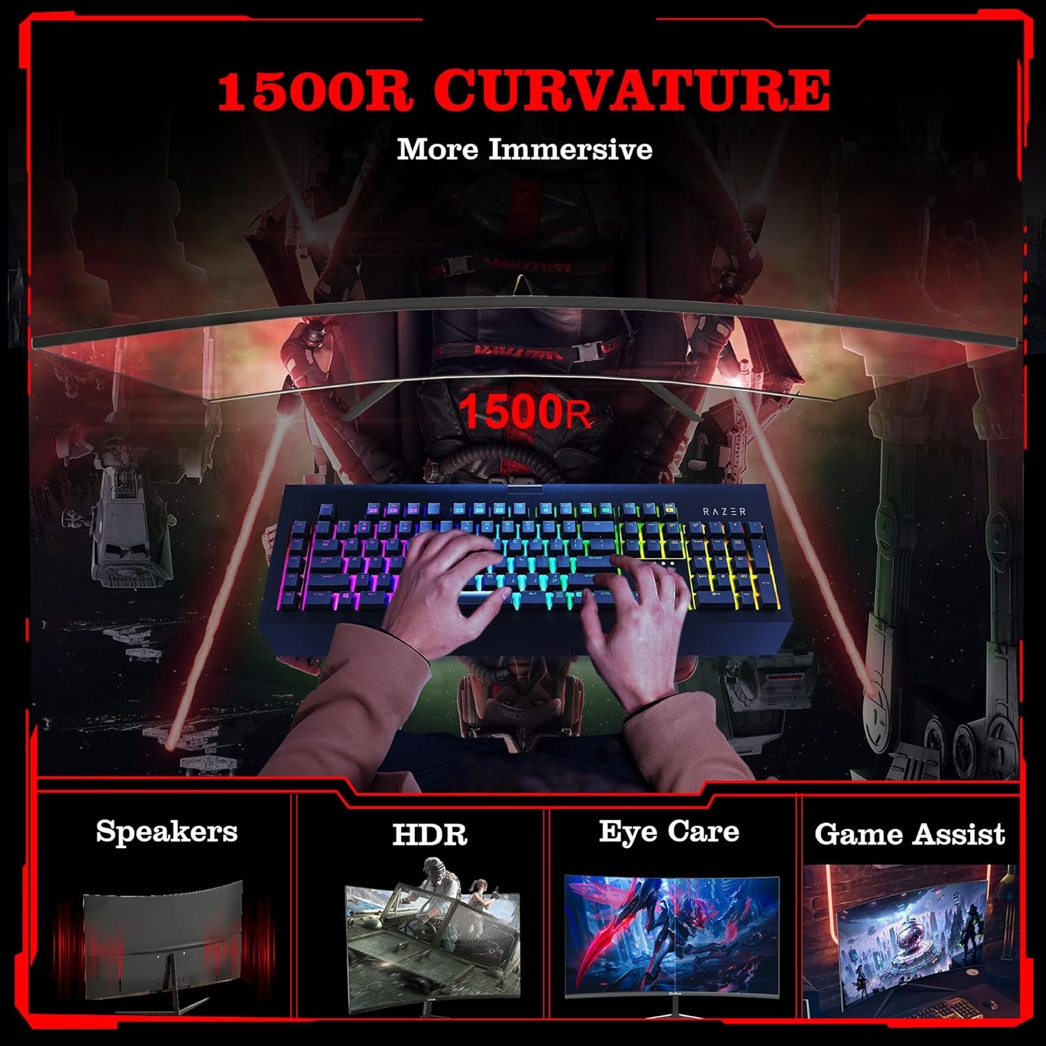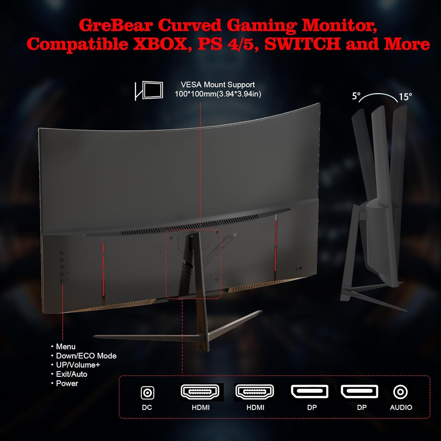 1500R Curvature for Enhanced Comfort: The gaming monitor features a 1500R curvature that provides an immersive viewing experience, allowing you to see more content with minimal head movement. Embrace a sleek 3-sided design in high-gloss black, accompanied by an innovative V-shaped stand. Installing is a breeze. Tweak your view with adjustable tilts (-5° to 15°), and let the flicker-free 27-inch monitor add comfort and ease to your screen time. The 100×100mm VESA-mount compatibility offers more choices for the perfect viewing spot.