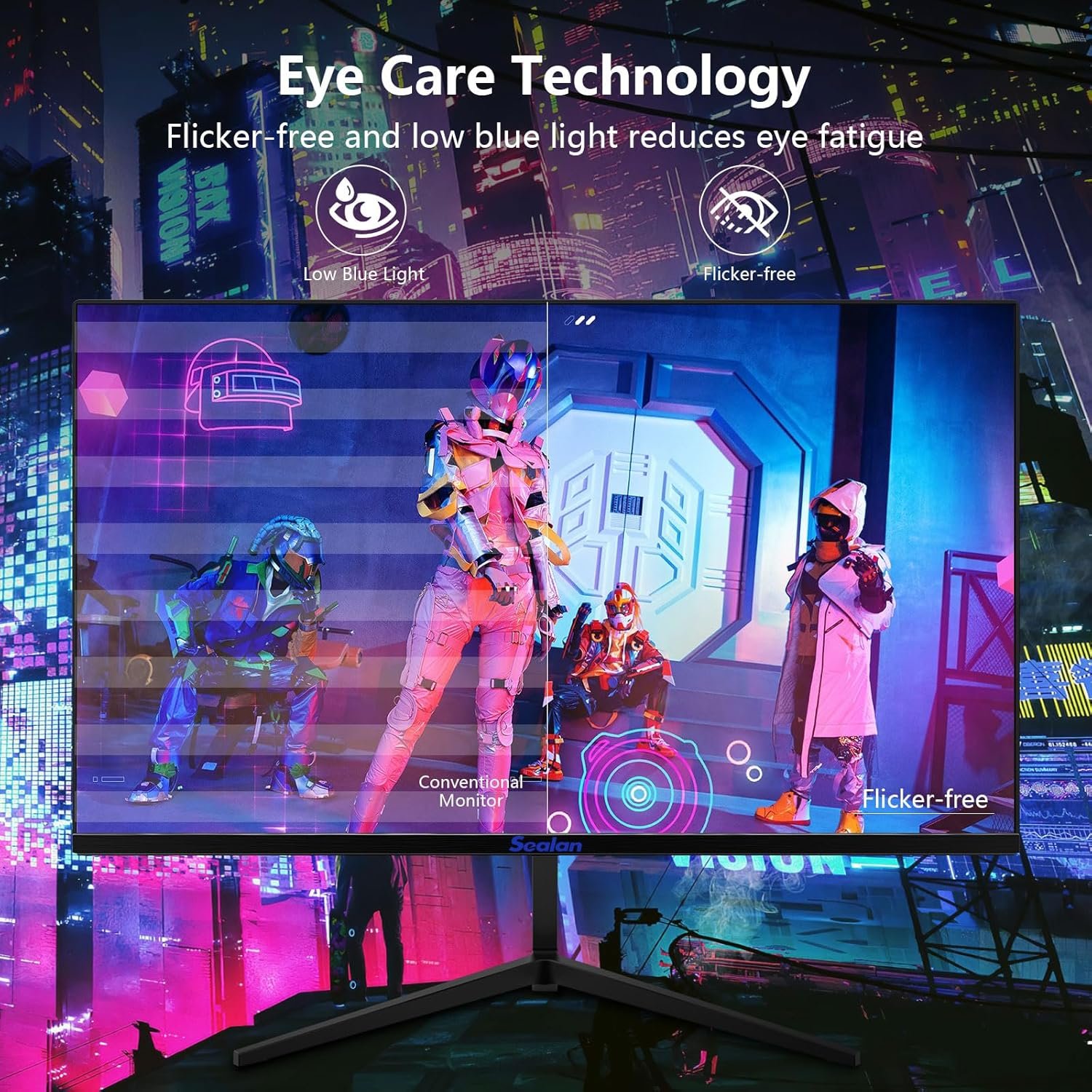 【Exceptional Gaming Experience】sealan 27inch gaming monitors utilize Adaptive-Sync technology for smooth, tear-free gaming experiences, eliminating lag and input delays. Enjoy immersive gameplay with added eye protection through flicker-free and low blue light features during extended gaming sessions.