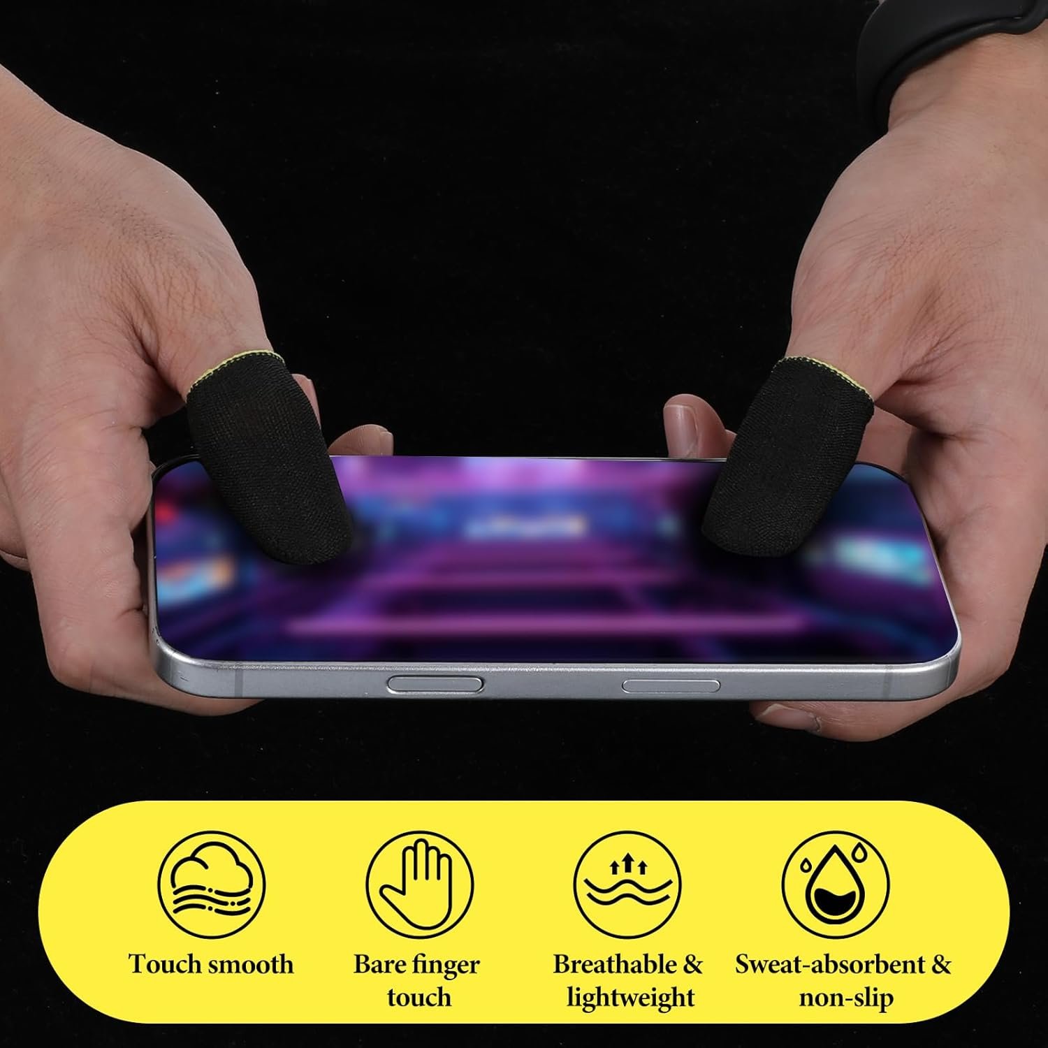 High Quality Materials: Our mobile gaming finger sleeves are made of high quality carbon fiber material, which is sturdy and durable, thin and breathable, dry and sweat-absorbent, and at the same time, the non-slip and anti-fall finger gloves help you improve your gaming experience