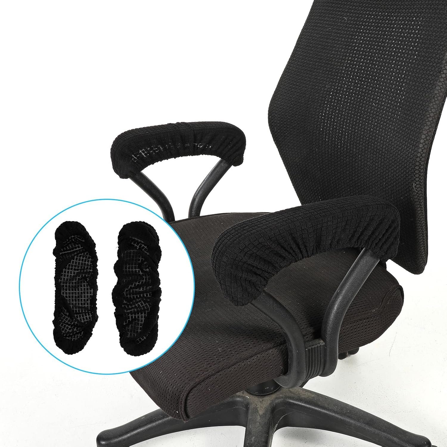 【Comfortable material】The desk chair cover accessories are made of soft and breathable material. The office chair covers provide a comfortable touch. The chair arm covers reduce arm fatigue during long-term use