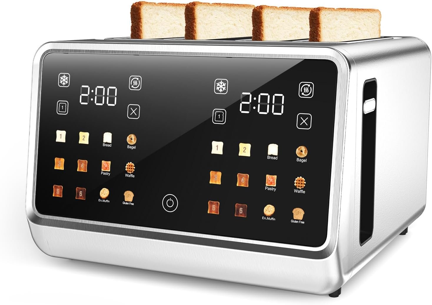 [One-Slice Toasting Mode for Quick Results] When you only need one slice of toast, the one-slice toasting mode ensures both slots heat simultaneously, delivering even toasting for a perfectly crisp slice. This touchscreen toaster is designed to save energy while providing the same delicious results, making it perfect for quick mornings or single servings!