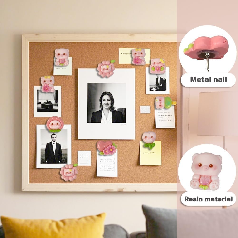 These mini pig products have a cute appearance, with nails that can be easily pressed onto a cork board, making it effortless to decorate a photo wall. The pig push pins are made of resin heads and metal tips, which are sturdy and durable.