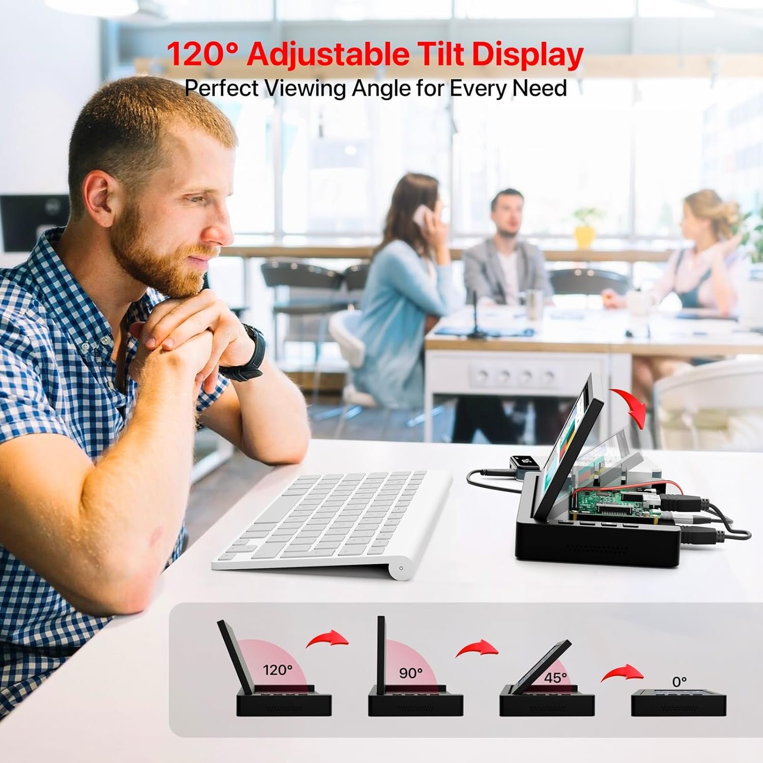 💚 [120° Adjustable Tilt Display & Multi-Device Support] The ergonomic 120° adjustable tilt mechanism ensures perfect viewing angles for any workspace setup. Compatible with Windows, MacOS, Raspbian, ChromeOS, Ubuntu, KODI, and Debian systems, making it ideal for developers, makers, gamers, and professionals seeking a versatile secondary display solution.