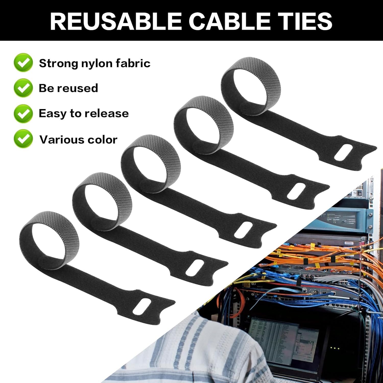 Hook and loop design: The cable organizer straps features a hook and loop design for easy adjustment. The cable tie opens and closes quickly and easily. Installation is quick and easy. Once tied, it resists falling off, making it convenient to use.