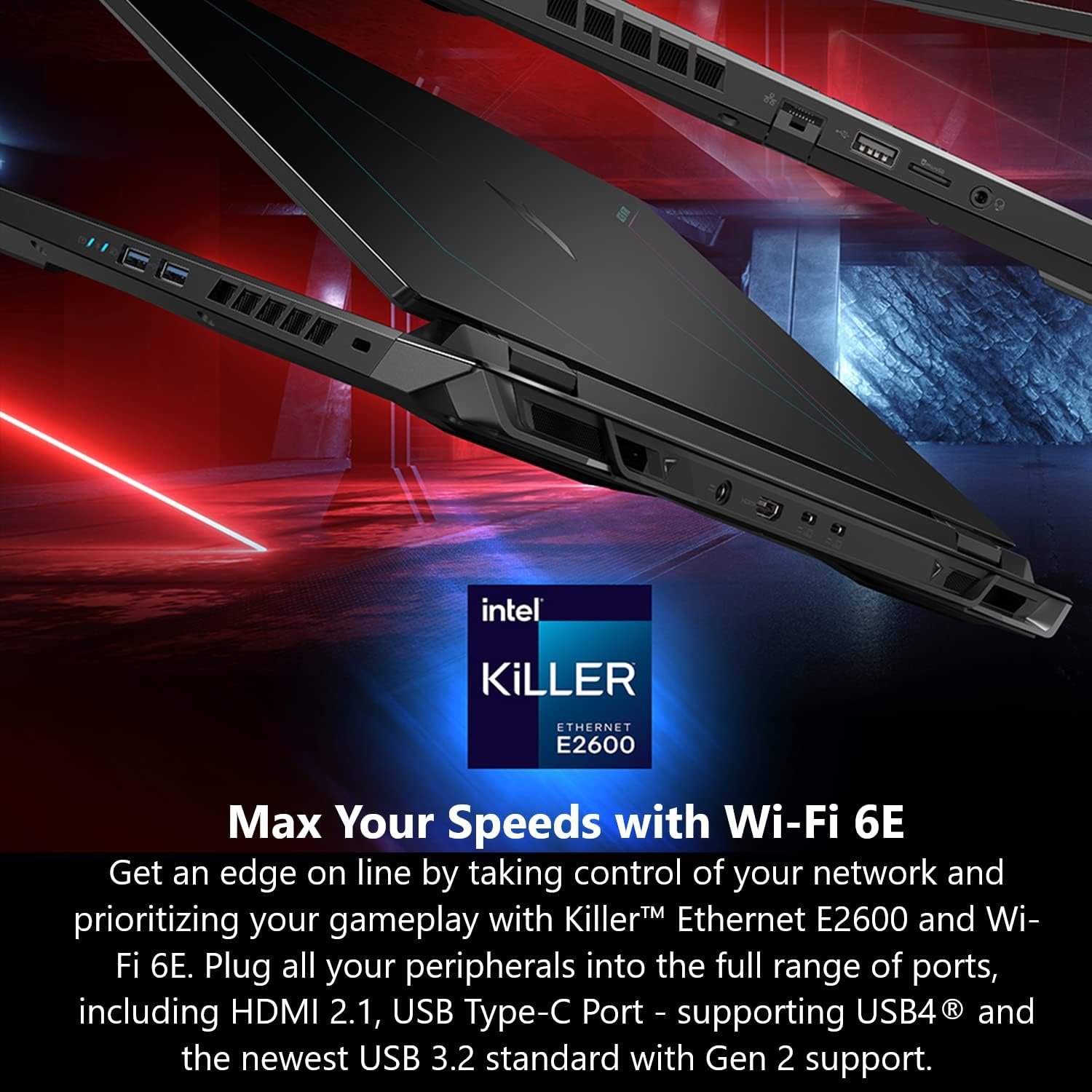 Internal Specifications: 16GB DDR5 Memory; 1TB PCIe Gen 4 SSD; Wireless Wi-Fi 6E supports dual-stream Wi-Fi in the 2.4GHz, 5GHz and 6GHz bands, including 2×2 MU-MIMO Technology; Killer Ethernet E2600 10/100/1000; Bluetooth 5.1 or above