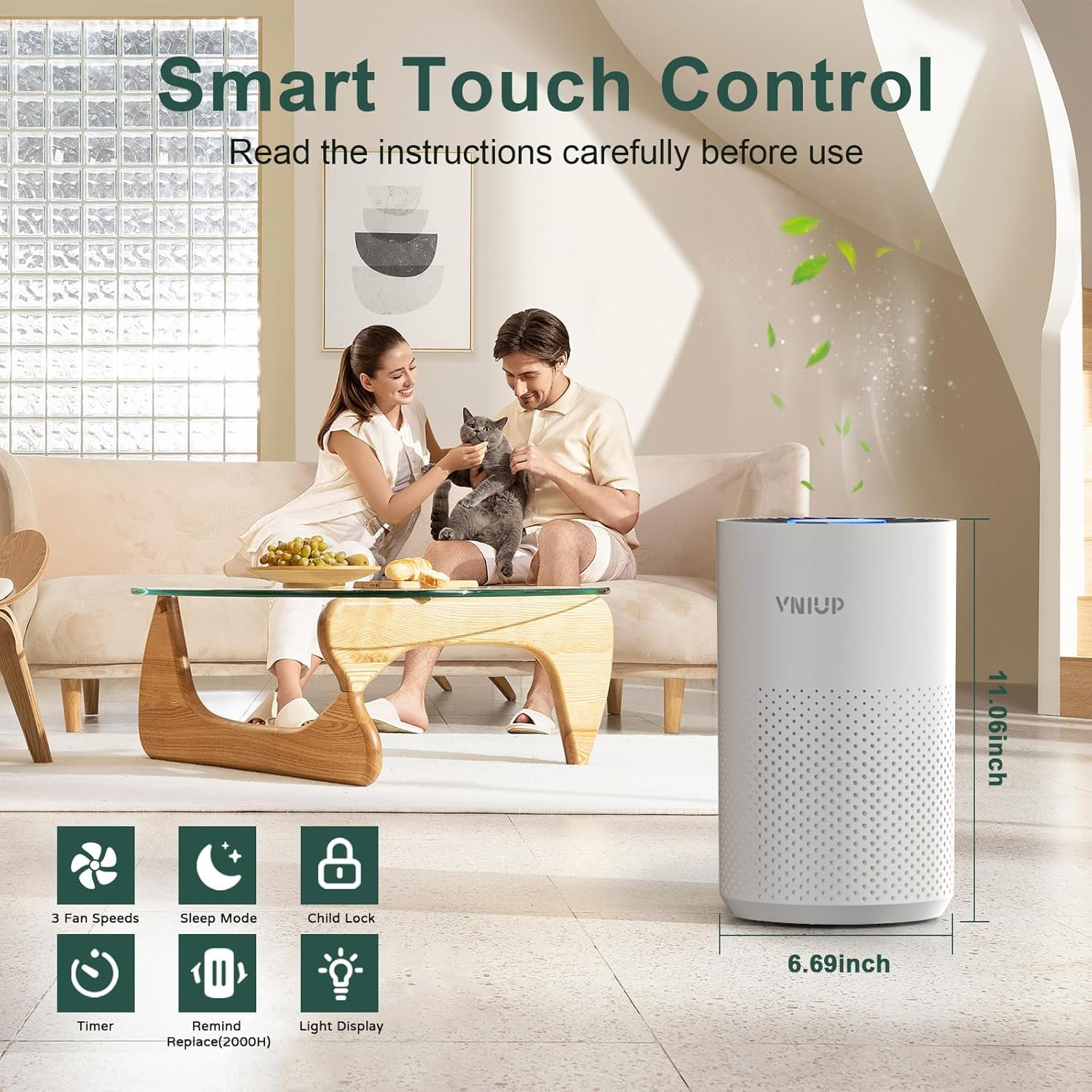 【 Ideal Gifts for Family and Friends 】 : VNIUP ZQA-4000C room air purifier, stylish and elegant appearance, Its exquisite design and efficient purification capacity are ideal for pet owners, babies, children, the elderly, or anyone wants to improve the air quality. On Mother’s Day, Father’s Day, Thanksgiving, Christmas, Valentine’s Day, etc., it can be given as a gift to family and friends