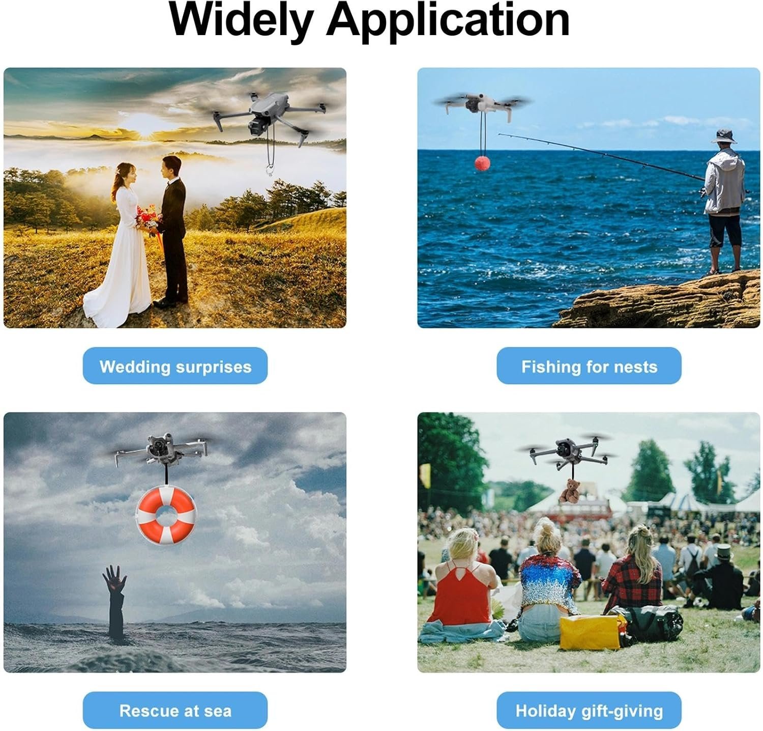 Widely Compatible: The drone dropping device is suitable for most drones like for DJI Mini 4 Pro/Mini 3 Pro Compatible with DJI Mini 5 Pro/Mini 2 SE/Mini 4K/Air 3S/Mini 3 drones etc. It is almost suitable for drones with a load weight of over 100g