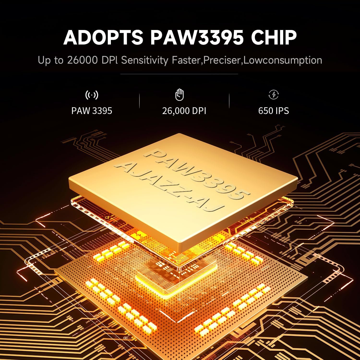 【PMW3395 and Custom DPI Sensors】The PMW3395 sensor has many advantages that make it an excellent choice for high-performance mice. Our AJ159 PC mouse is equipped with this chip and offers DPI settings from 100 to 26000. 6 adjustable DPI levels (400-800-1200-1600-2400-3200) and can be customized through our intuitive driver software.