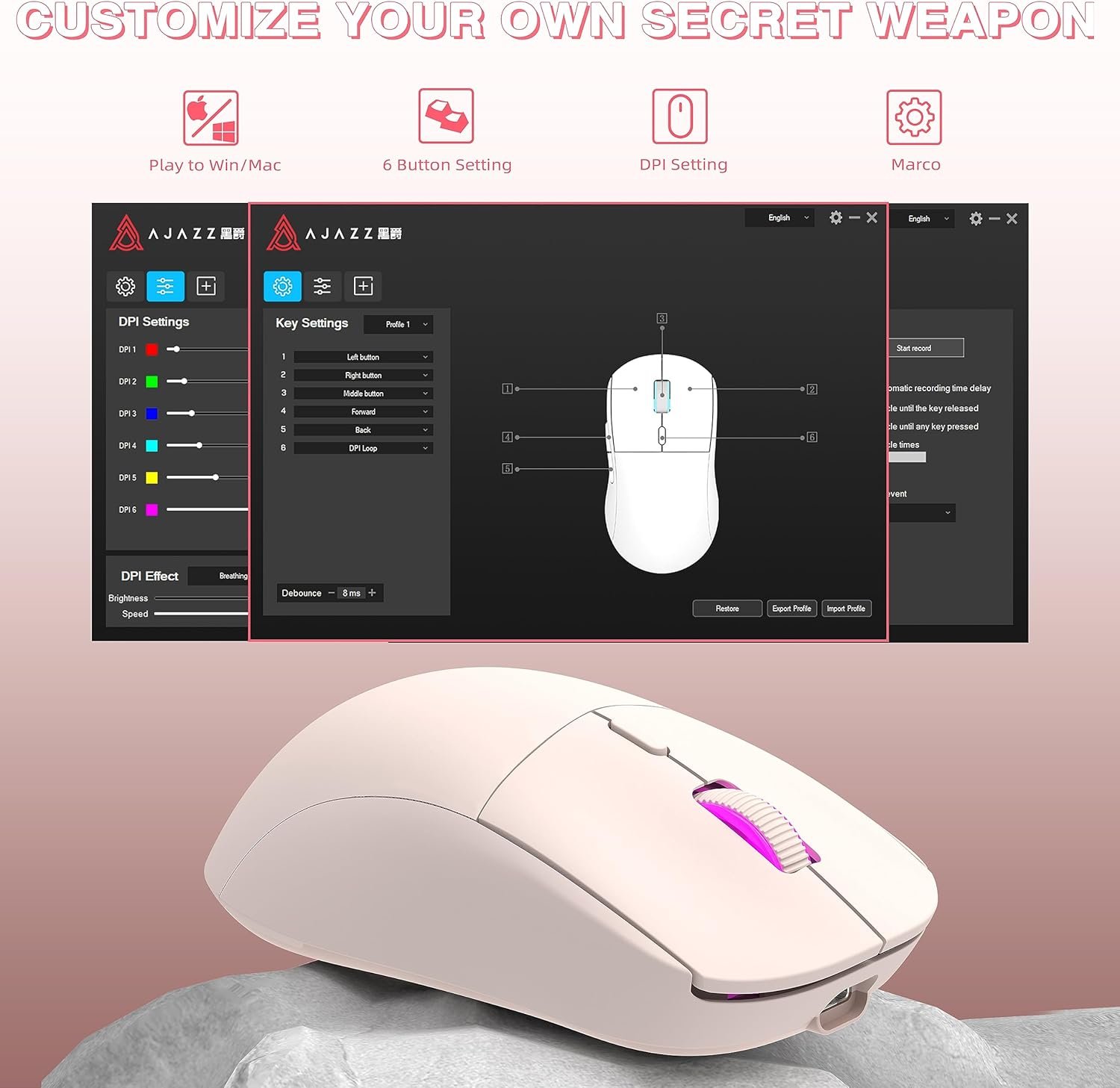 【AJAZZ SOFTWARE SETTING】http://www.a-jazz.com/en/ rechargeable mouse downloaded driver allows for customized settings for several buttons on the gaming mouse, as well as setting and adjusting parameters such as wheel backlight color, DPI, and LOD.