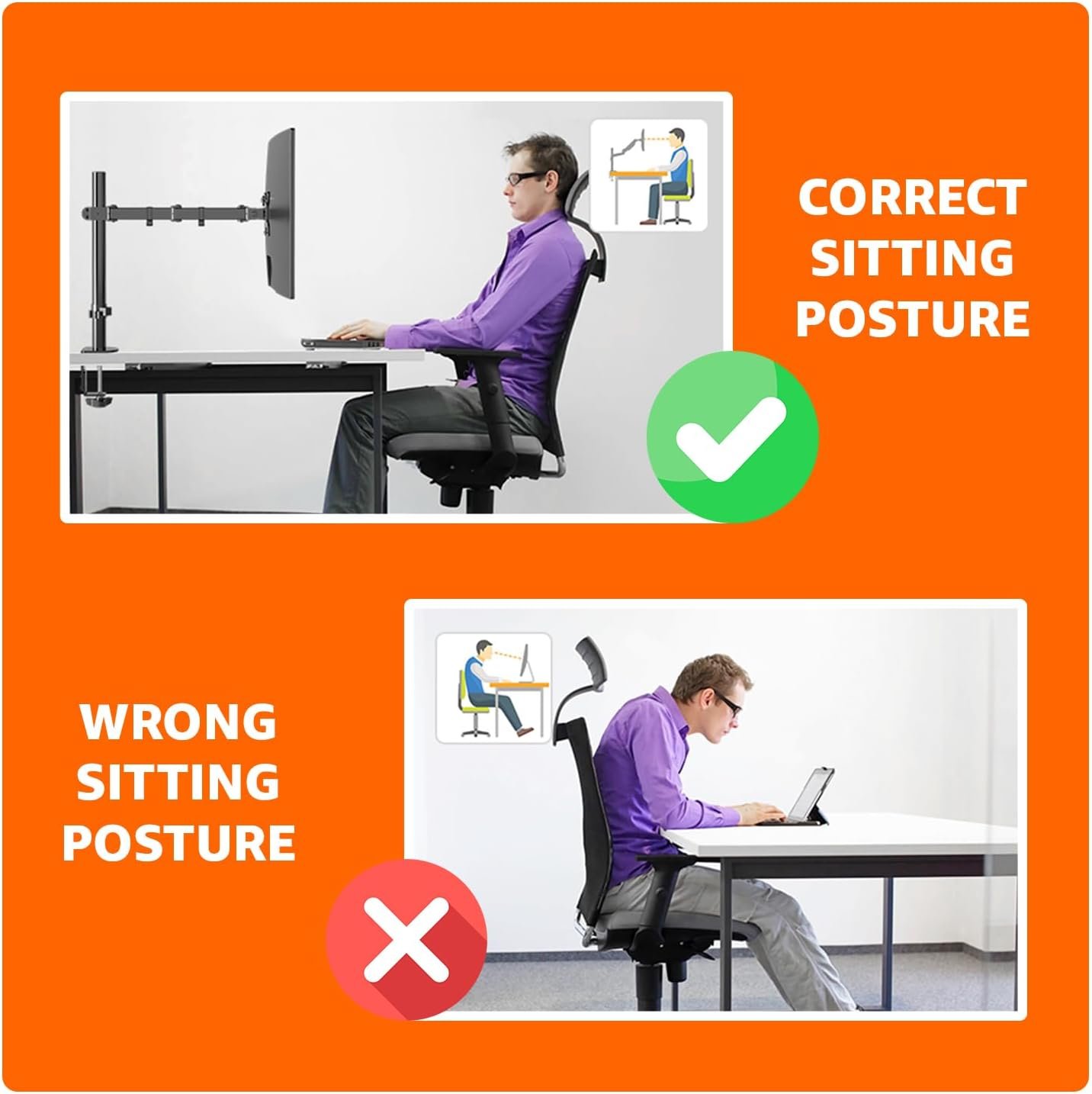 360-degree rotation (for landscape or portrait mode); height-adjustable horizontal-arm mount adjusts from 7.9 to 14.2 inches high