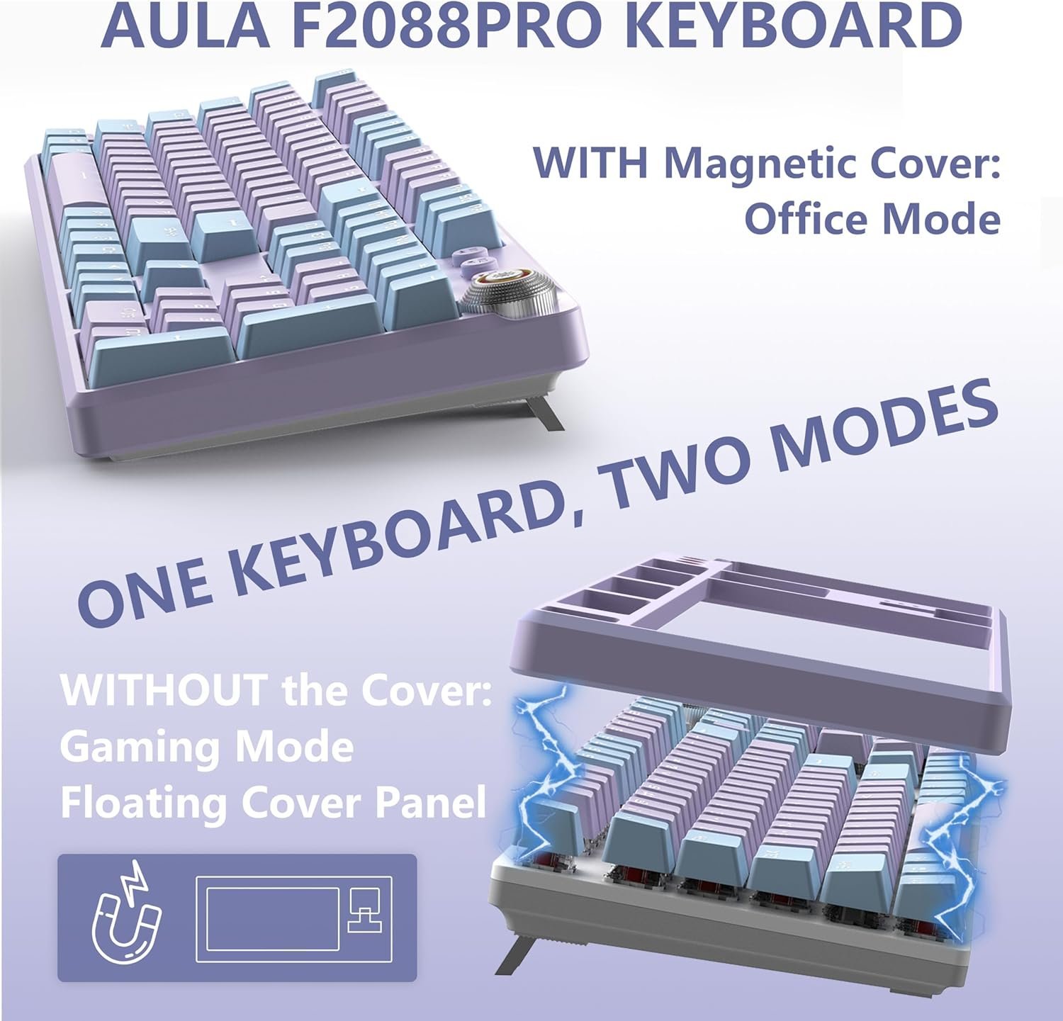 Easy Removal & Style Switching: The keyboard is designed with a removable magnetic top cover that makes it easy to remove and install the top cover in less than 1 second. You can choose between recessed or floating styles(Metal Keyboard). The keyboard mounted top cover with floating keycaps protects the keyboard from dust. Keycaps are removable for easier cleaning of internal dirt. Durable ABS keycaps are used, not easy to scratch and fade, ensuring long-lasting use