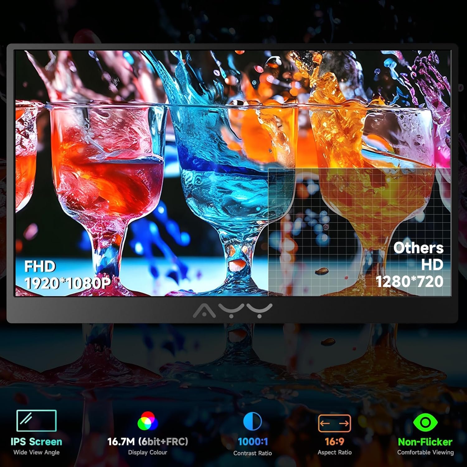 [FHD 1080P PORTABLE MONITOR] AYY portable monitor for laptop is made of 15.6 inch advanced IPS screen with 1920*1080 resolution ,delivers with 178° viewing angles, 1000:1 contrast ratio, 16: 9 aspect ratio, presents a vivid image and truly immersive viewing experience,It aslo can effectively reduce blue light radiation damage, no flickering, eye-care, and make it easier to watch for a long time