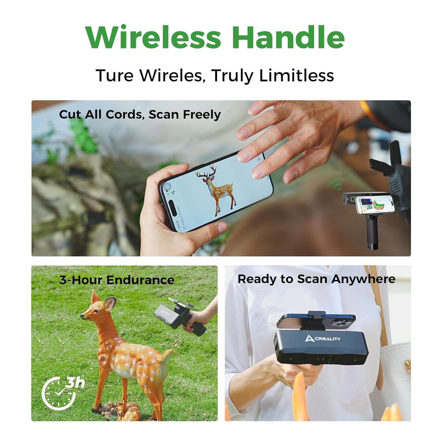 True Wireless Connection : Break free from cluttered workspaces with the industry’s first 100% wireless 3D scanner – no USB cables, power cords, or HDMI tethers. Experience uninterrupted 3D capture with our ultra-responsive Wi-Fi 6 + Pogo pin fast data transmition engineered to deliver <10ms end-to-end latency