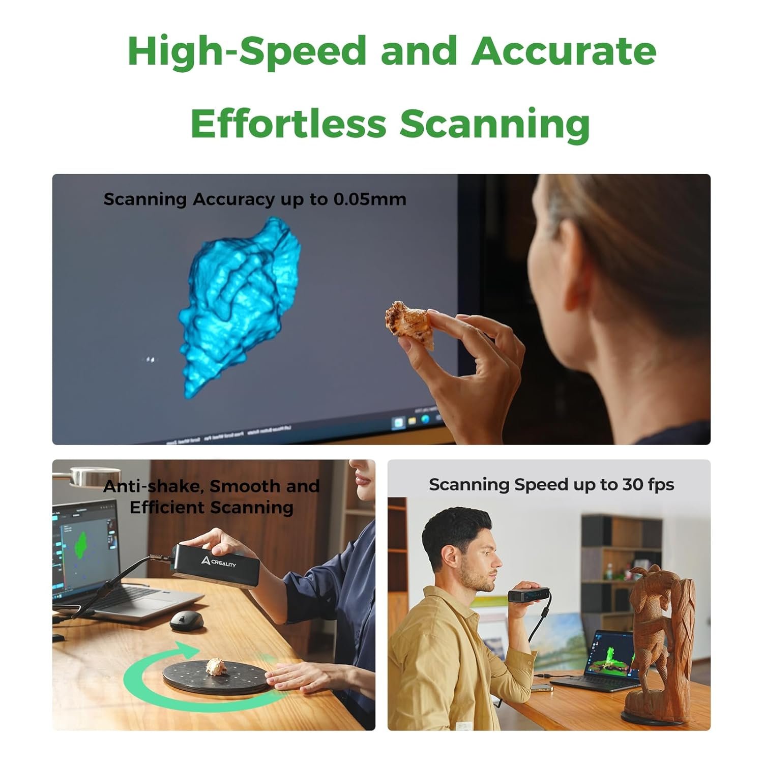 Your All-Around Solution for 3D Scanning: Whether scanning a tiny figurine or a massive car tire, the Creality Otter Lite excels at both extremes. Its innovative quad-lens system (featuring dual long- and short-focal-length lenses) dynamically adapts to object size variations. Capture intricate details on jewelry or expansive structures like furniture—no lens swaps or module changes required.Scanning Range: 20 × 20 × 20 mm³ to 2000 × 2000 × 2000 mm³. That‘s a good father day gift
