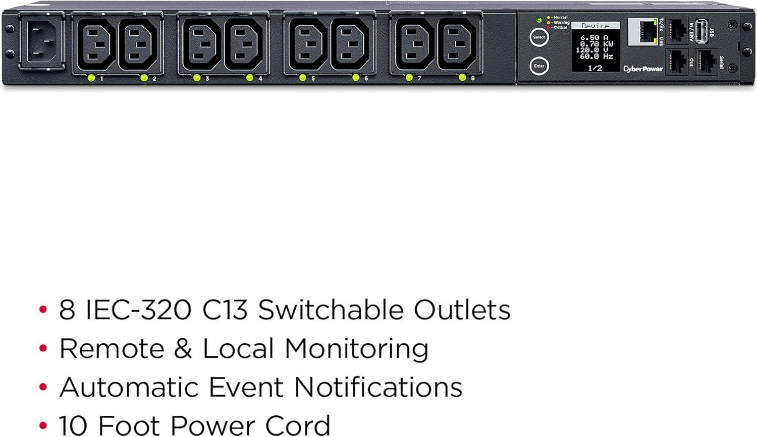 CyberPower PDU41004 Switched PDU, 100-240V/12A, (Derated to 12A UL /10…