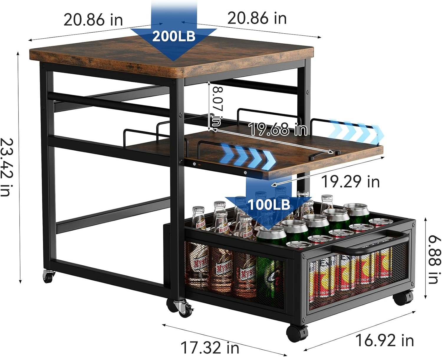 Enlarged Size: Measuring 20.86″D x 20.86″W x 23.42″H, this mini fridge stand provides ample space for larger fridges, ensuring your appliance has a sturdy, reliable base. Great for kitchens, dorms, or offices where space and organization matter.