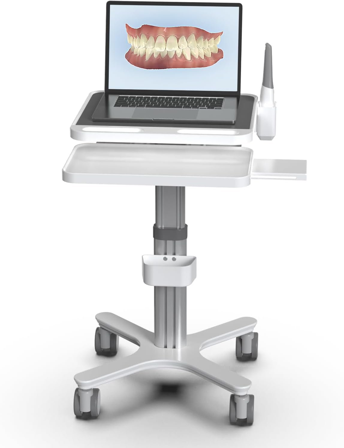 HAXYCC Dental Clinic Trolley Cart with Oral Scanner Holder,Hospital Mobile Workstation with Laptop Tray and Silent Wheels
