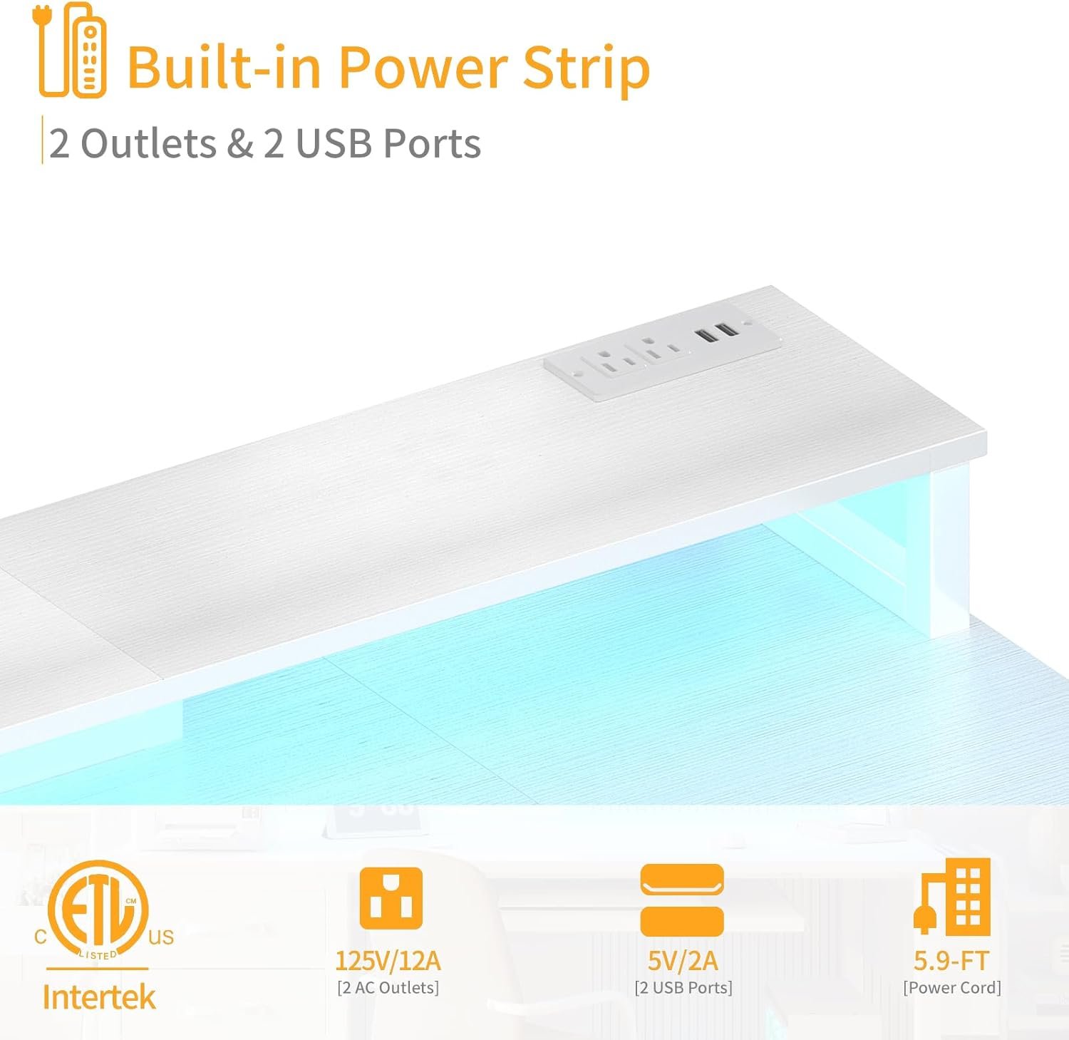 Multi-functional Power Strip for Safety: This computer desk comes with a built-in power strip that offers 2 power outlets and 2 USB charging ports, perfect for powering your computer, monitor, gaming equipment, tablet, phone, and other electronic devices