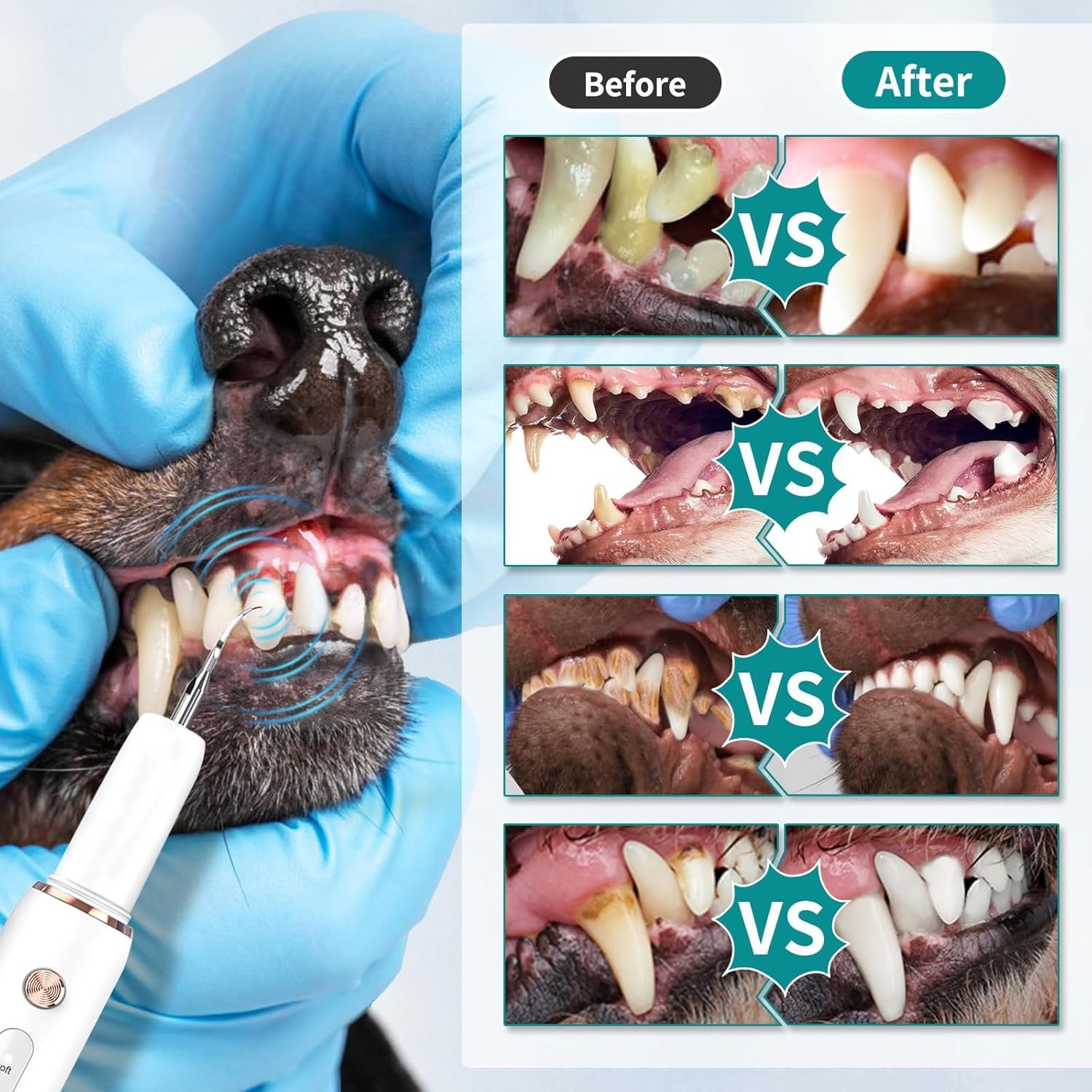 【Smart Auto-Stop Technology & LED Light】Equipped with auto-stop design, the dog tartar remover stops when touching dog gums or soft parts and only works on teeth, ensuring safety and comfort. The built-in LED light illuminates your dog’s mouth for precise cleaning, even in hard-to-reach areas.