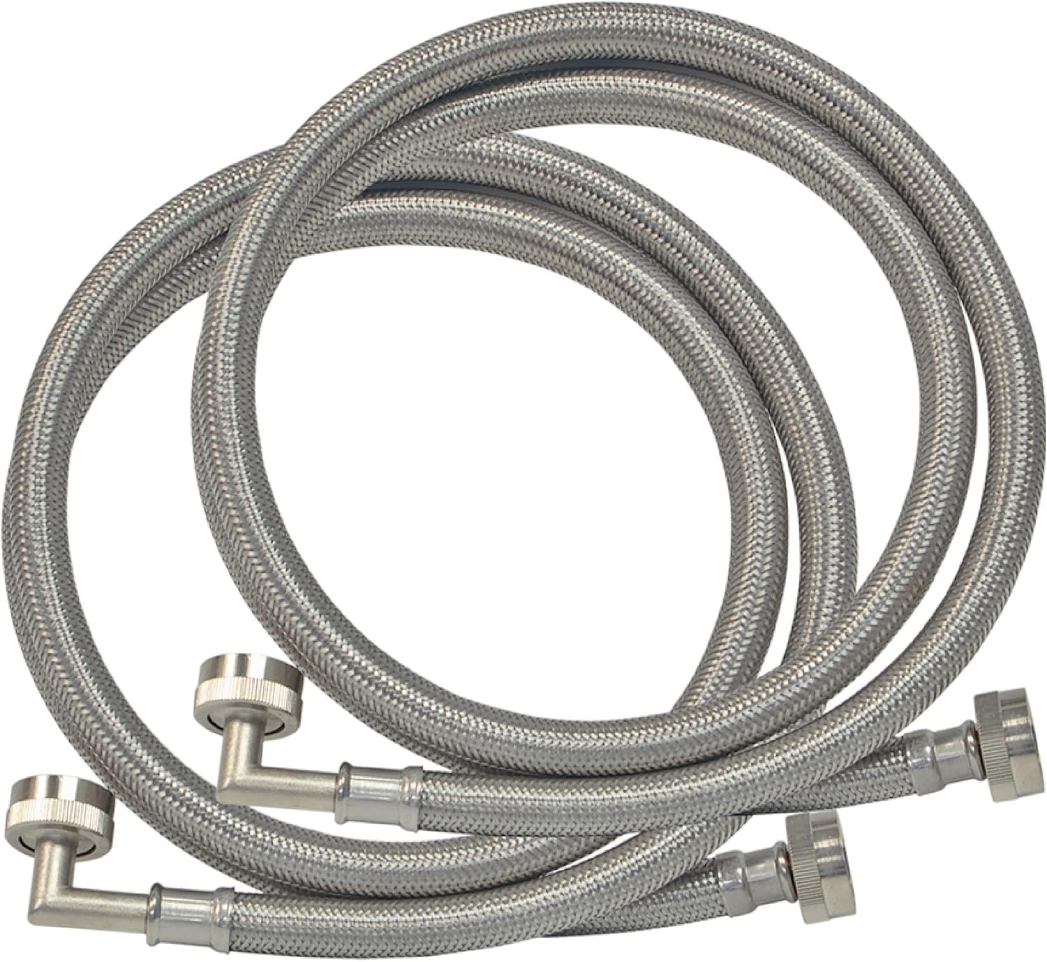 WHAT IS INCLUDED: Two washing machine hoses (one for cold water and one for hot water), each measuring 6 feet in length, with 3/4 in FHT connections on each end and 90 degree elbows for added installation ease