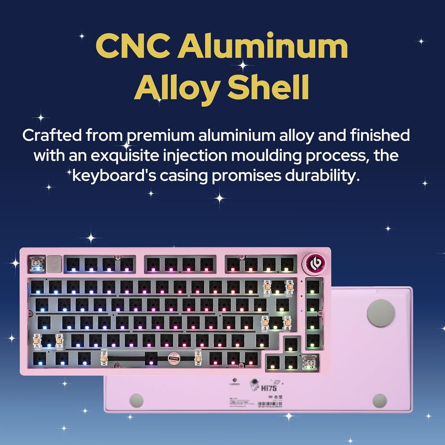 【Revolutionary Mode-Switching and Enhanced Control】The EPOMAKER x LEOBOG Hi75 Aluminum keyboard kit introduces the innovative knob, an epitome of style meets functionality. This intuitive knob allows for smooth transitions between work and gaming modes, offering a constant RGB glow for a focused work environment and dynamic RGB flashing for an immersive gaming experience. It also provides refined control over volume and lighting, adding sophistication to every keystroke.
