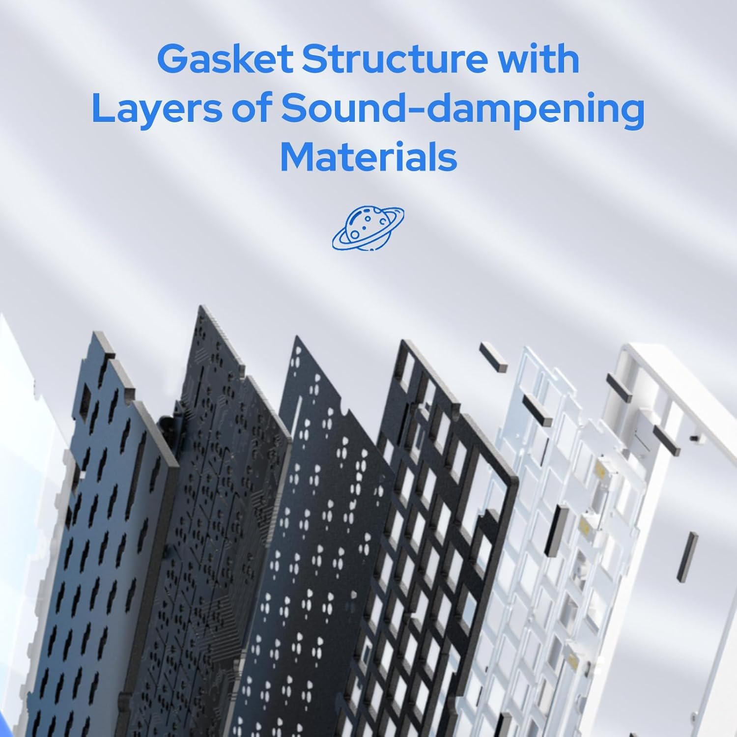 【Sleek 75% Layout, Gasket-Mounted Structure】The Hi75 features a sleek, 75% layout with 81 essential keys, striking an ideal balance between minimalistic design and full functionality. This layout ensures you have every key you need, without overwhelming your space. Its sophisticated look enhances any desk setup. Moreover, the ingenious GASKET design, complemented by PORON gaskets, significantly minimizes cavity sound, enhancing your typing sounds.