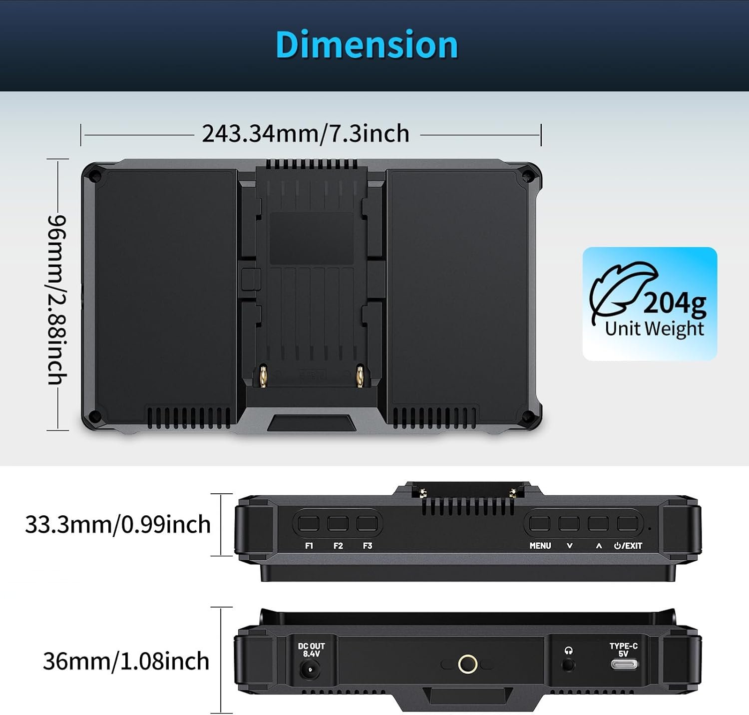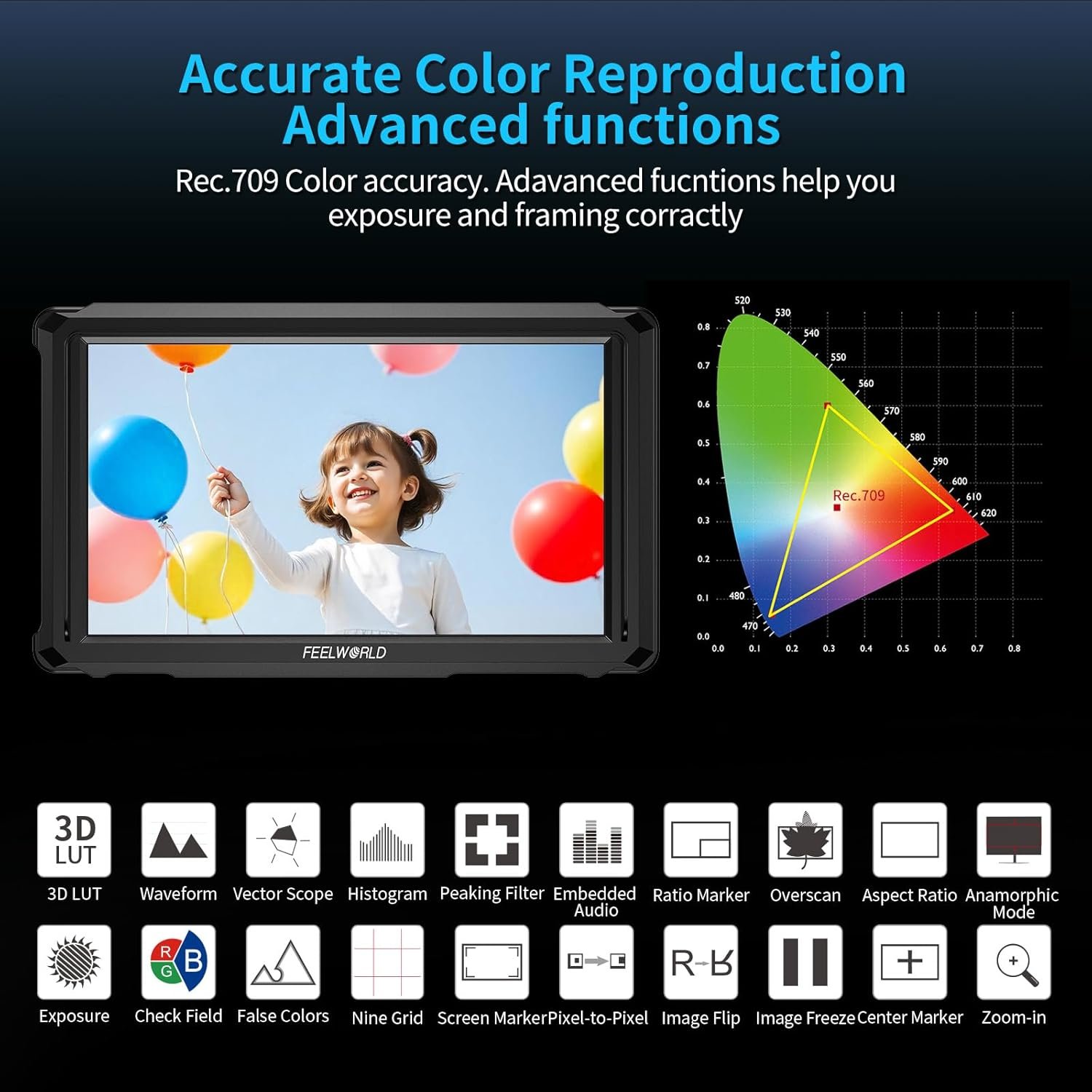 [Advanced functions help you focus accurate] This 6 inch on camera monitor enable the waveform, vector scope,histogram,peaking,false color functions will helps your focus and exposure accurately.With 3D Lut load,can always preview your lut file effect that contribute to your post productions.