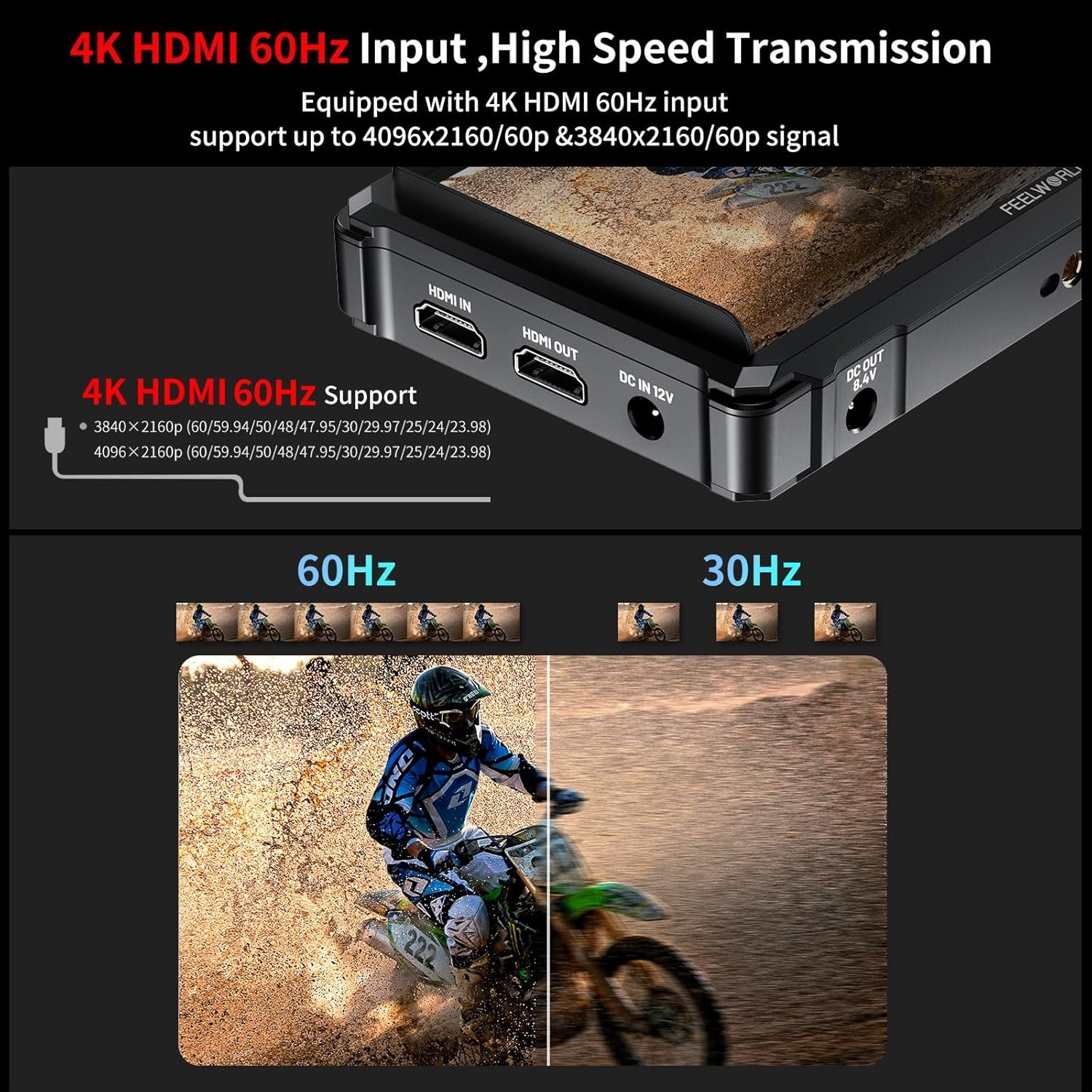 [4K HDMI 2.0 Compatibility] Equipped with HDMI 2.0 input and output, Feelworld FW 568 Pro supports up to 4K at 60FPS, delivering higher performance than other models that only support 4K at 30FPS. The upgraded version offers compatibility with a wide range of HDMI signal formats.