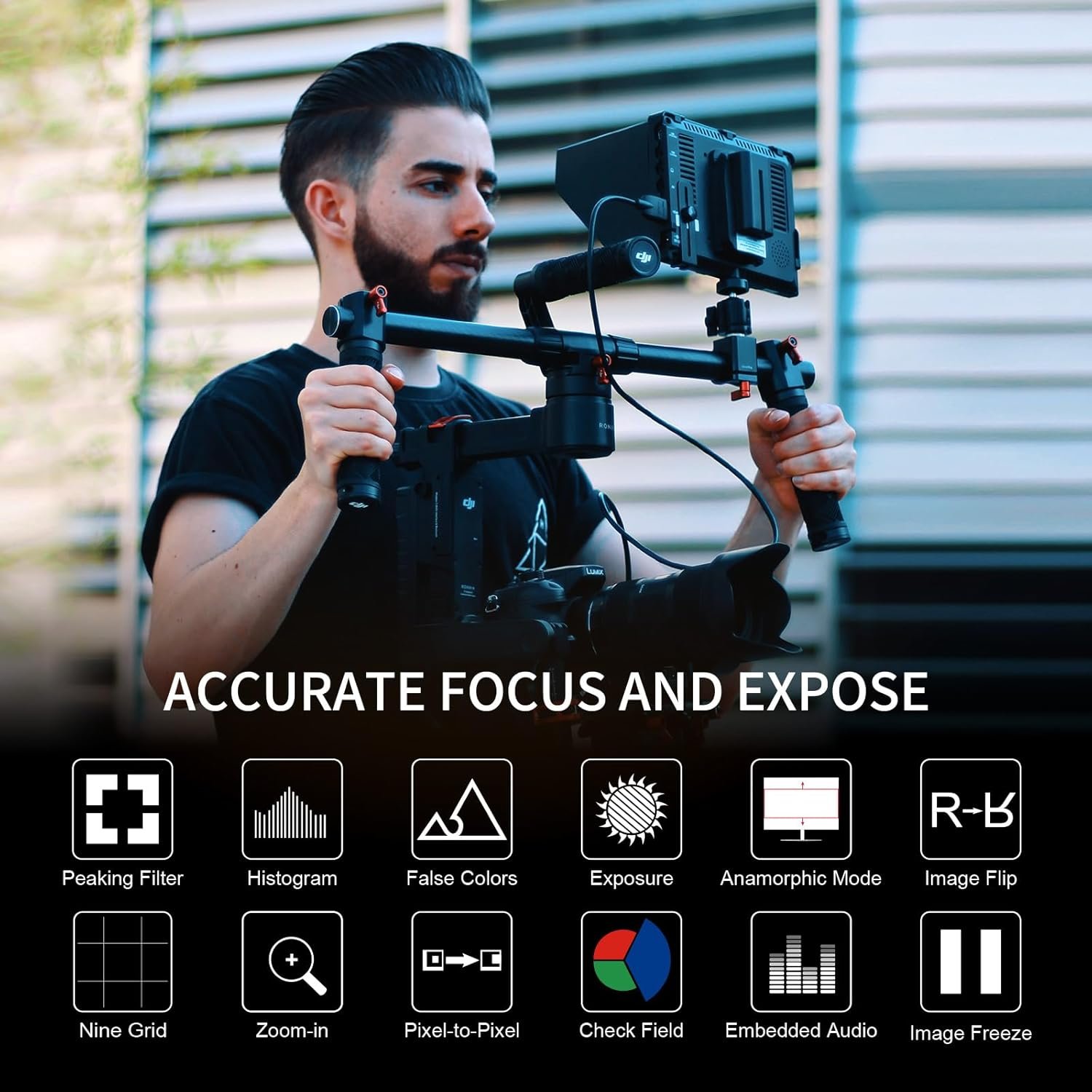 【Advanced Features】Equipped with professional features such as peaking focus assist, image freeze, image flip, and zoom, FW759 dslr monitor helps enhance the shooting experience