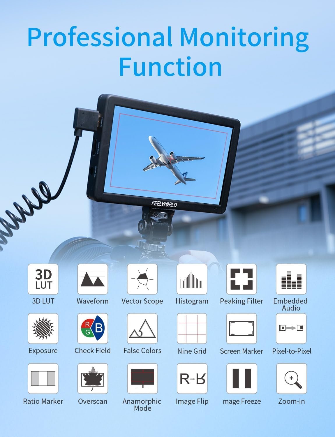 【Accurate Focus and Expose】With various professional monitoring functions such as waveform, vector scope, and histogram, meeting professional monitoring needs like live broadcasting. Load custom 3D LUTs, preview filming look in field shooting