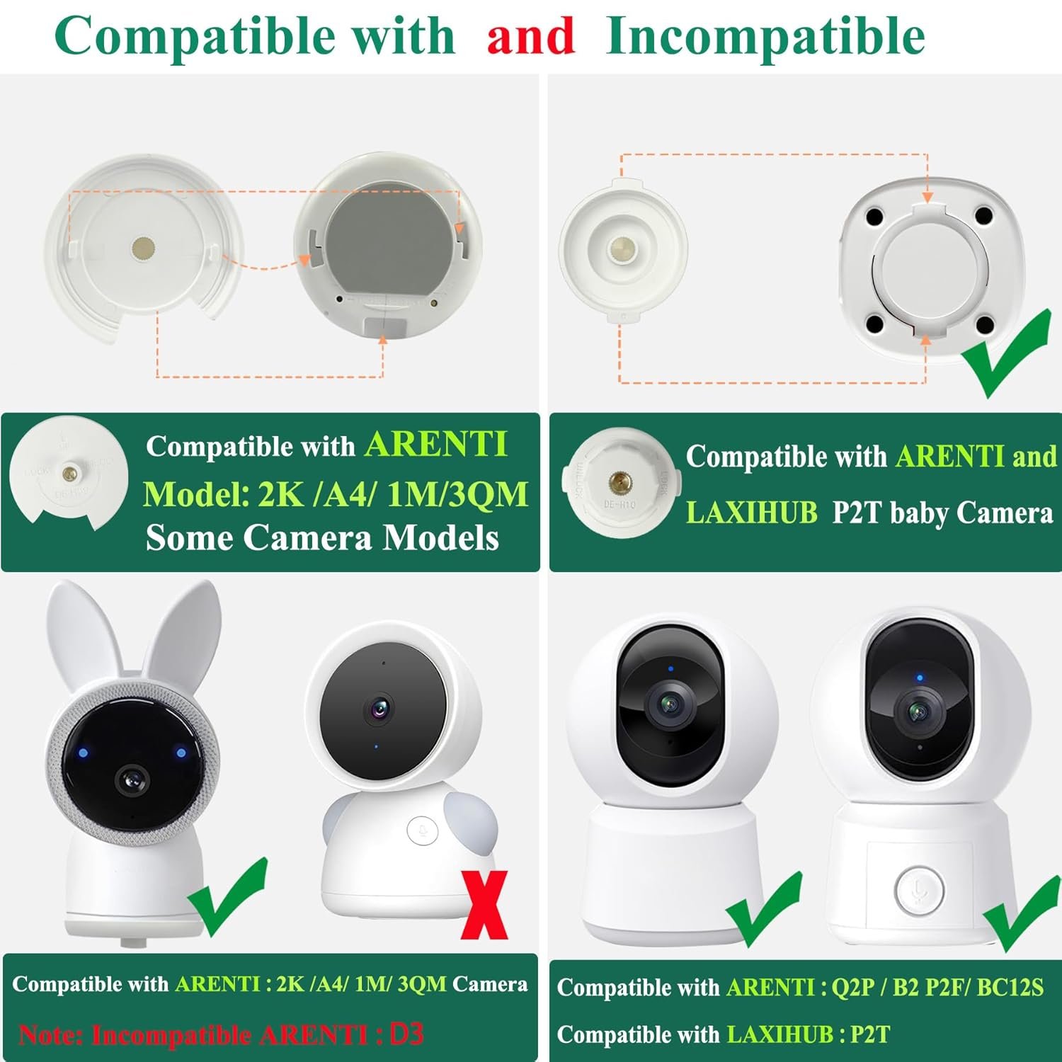 【 Compatibility】The baby monitor mount is compatible with ARENTI 2K/A4/1M/3QM/P2Q/B2/P2F baby cameras,Perfect fit for your baby monitor.If you are unsure whether your baby monitor is compatible with our baby monitor holder, please contact us and we will be happy to assist you (NOTE: Baby camera not included in the package).