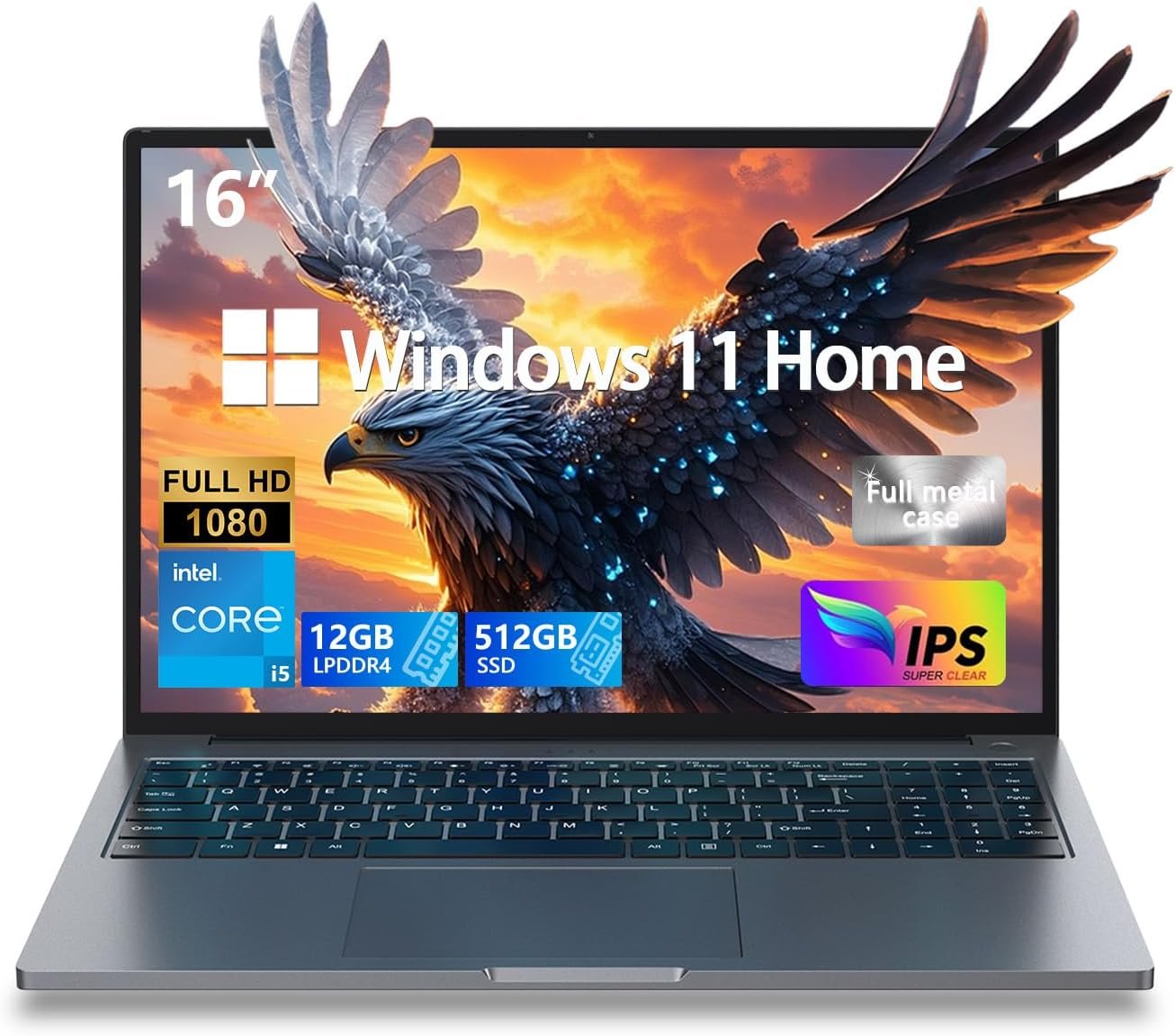 Gaming Laptops 16-inch Ultra-Slim Laptop with Core i5, 12GB RAM, 512GB SSD – Full Metal Body, 16 inch IPS 1920×1200 Immersive 16:10 Display,WIFI,BT5.0 ,HDMI,Type C,Multiple Ports & Windows 11 Home