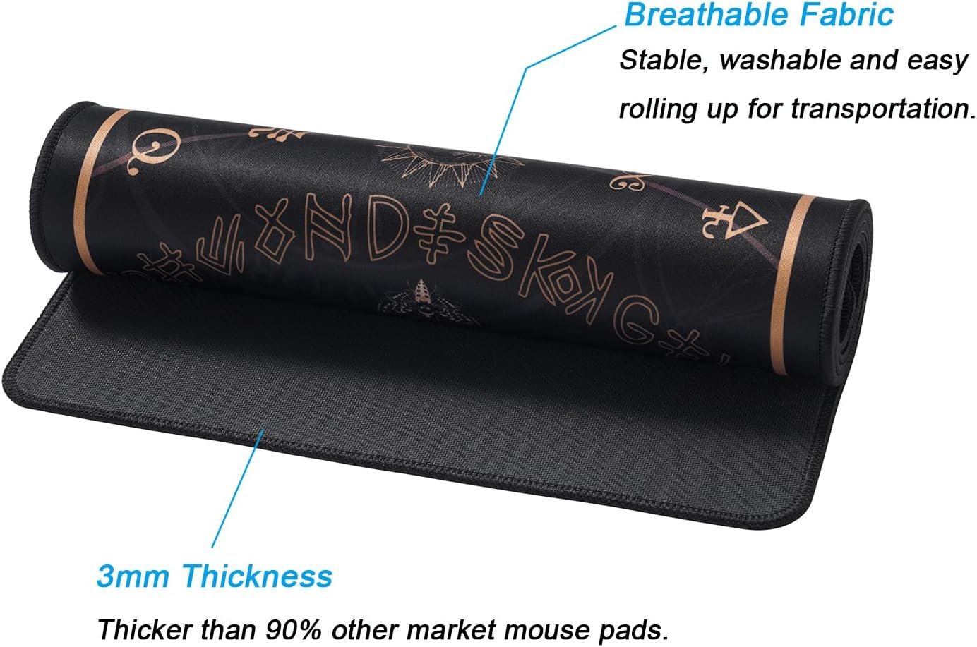 PREMIUM MATERIAL: Instead of stuffy fabric, this mousepad use breathable fiber cloth on cover and natural rubber on backing.It’s stable, washable, rolling up for anytime transportation.With 3mm thickness, thicker than 90% other market mouse pad.