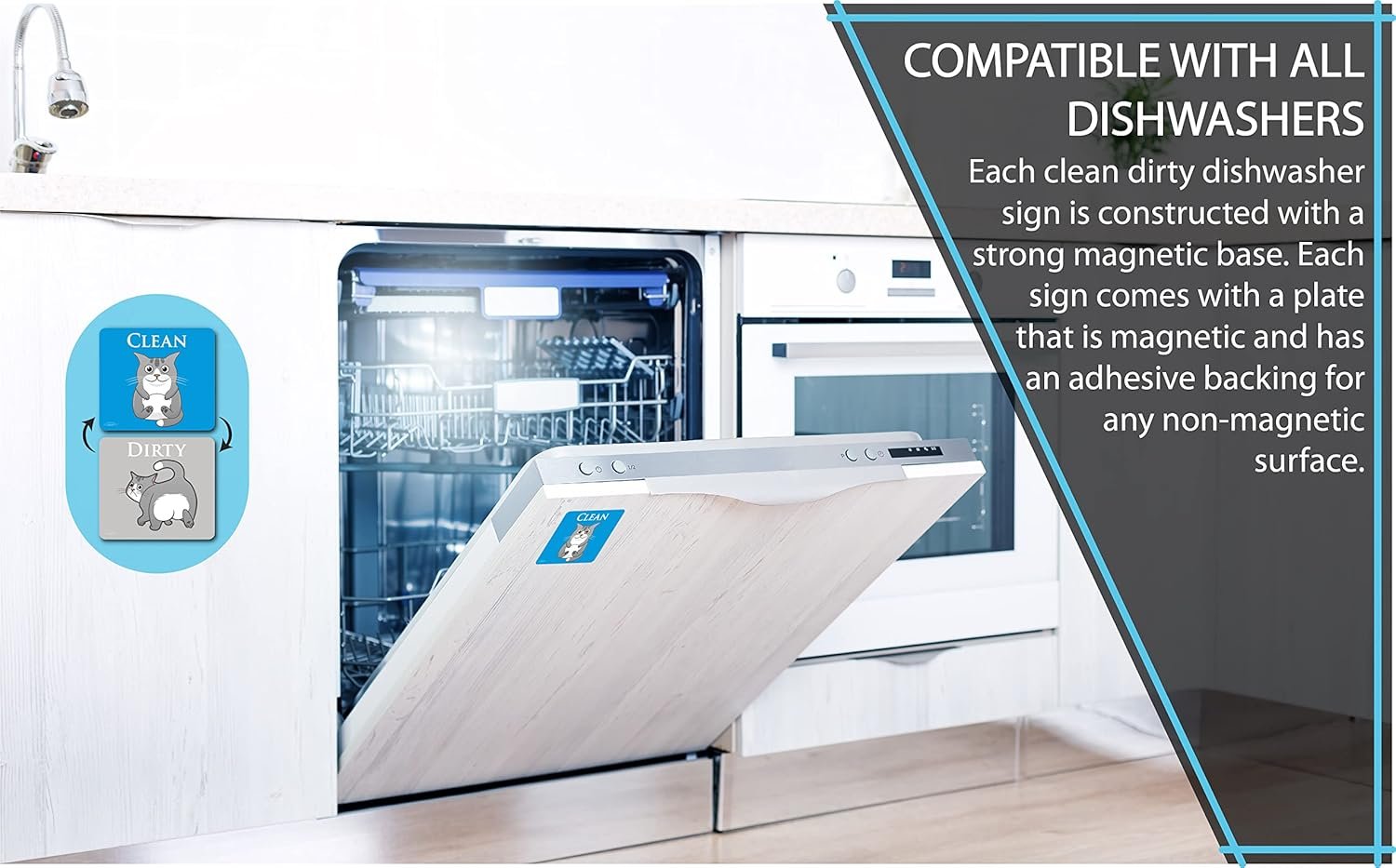 COMPATIBLE WITH ALL DISHWASHERS – Each strong dirty clean cat dishwasher magnet includes a magnetic plate with an adhesive back side for any non-magnetic kitchen dishwashers!