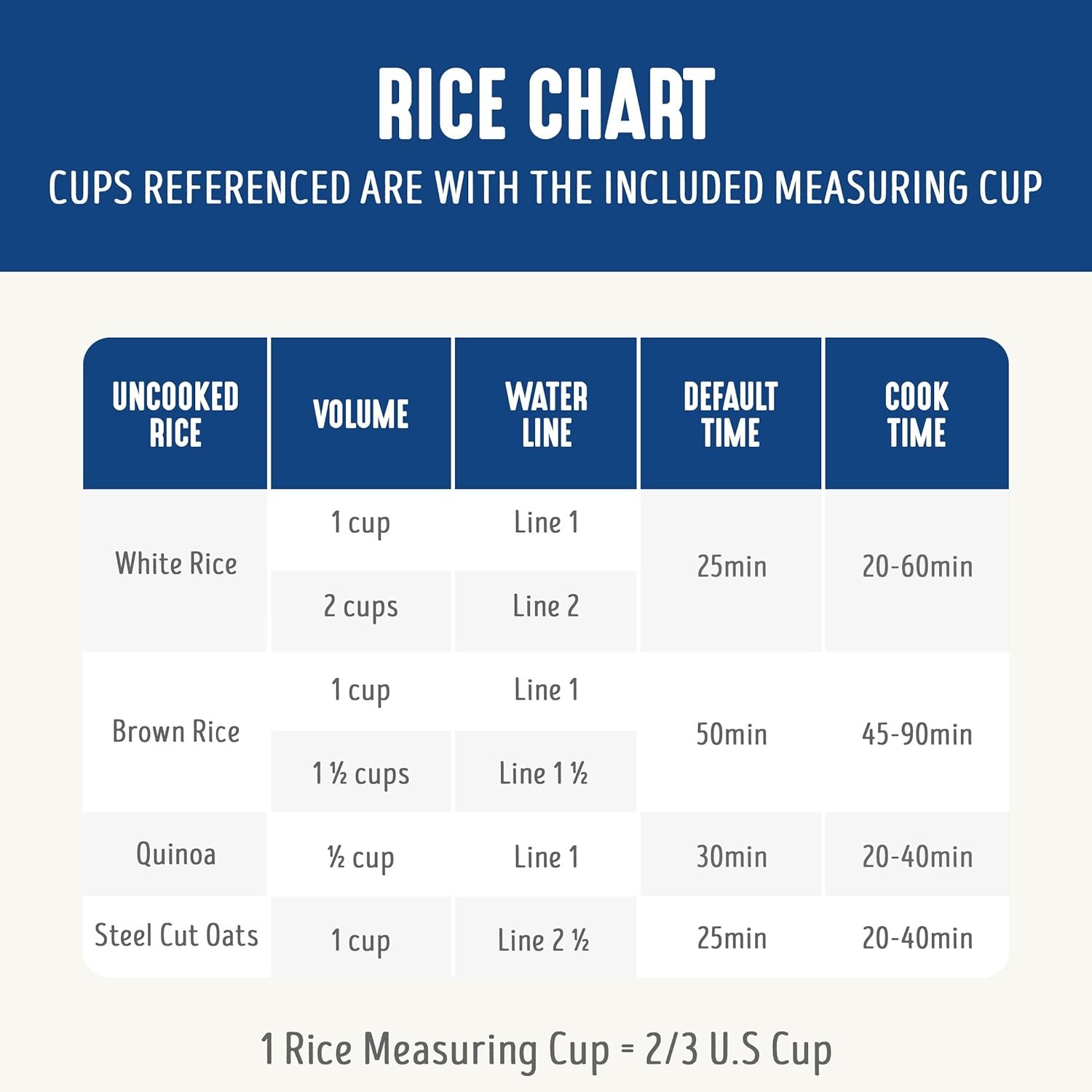 EASY ONE-TOUCH COOKING: One-touch cooking for White Rice, Brown Rice, Quinoa, and Steel Cut Oats – consistently perfect results.