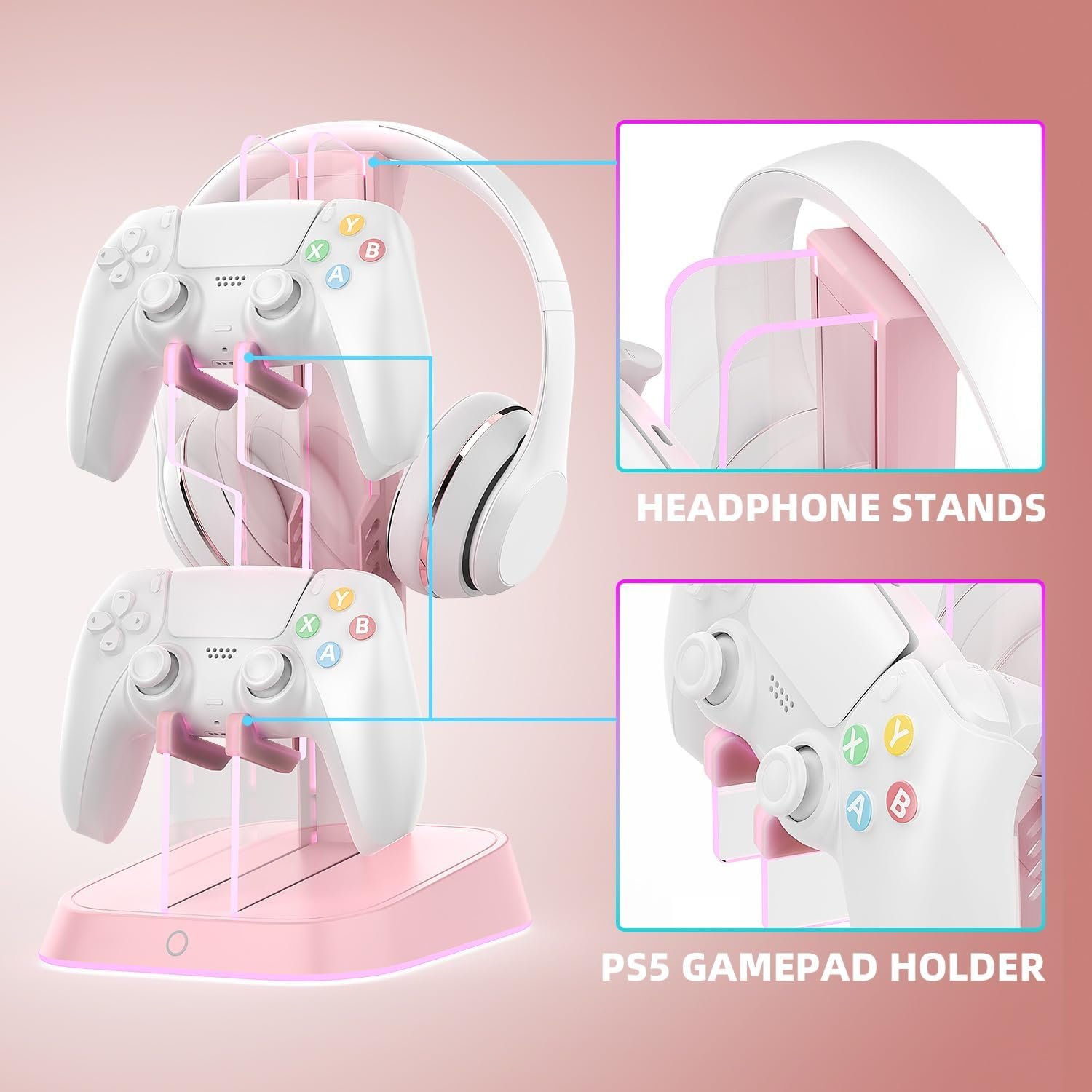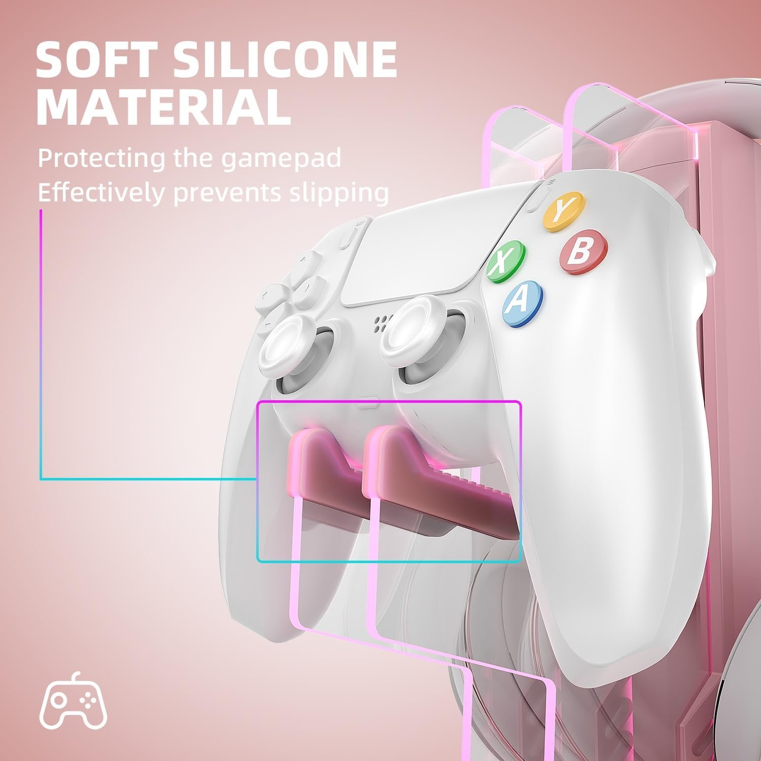 Vibrant 7-Color RGB Lighting:Enhance your gaming setup with a dynamic RGB LED headset stand. The game controller holder adds a cool glow to your desk, creating an immersive atmosphere.