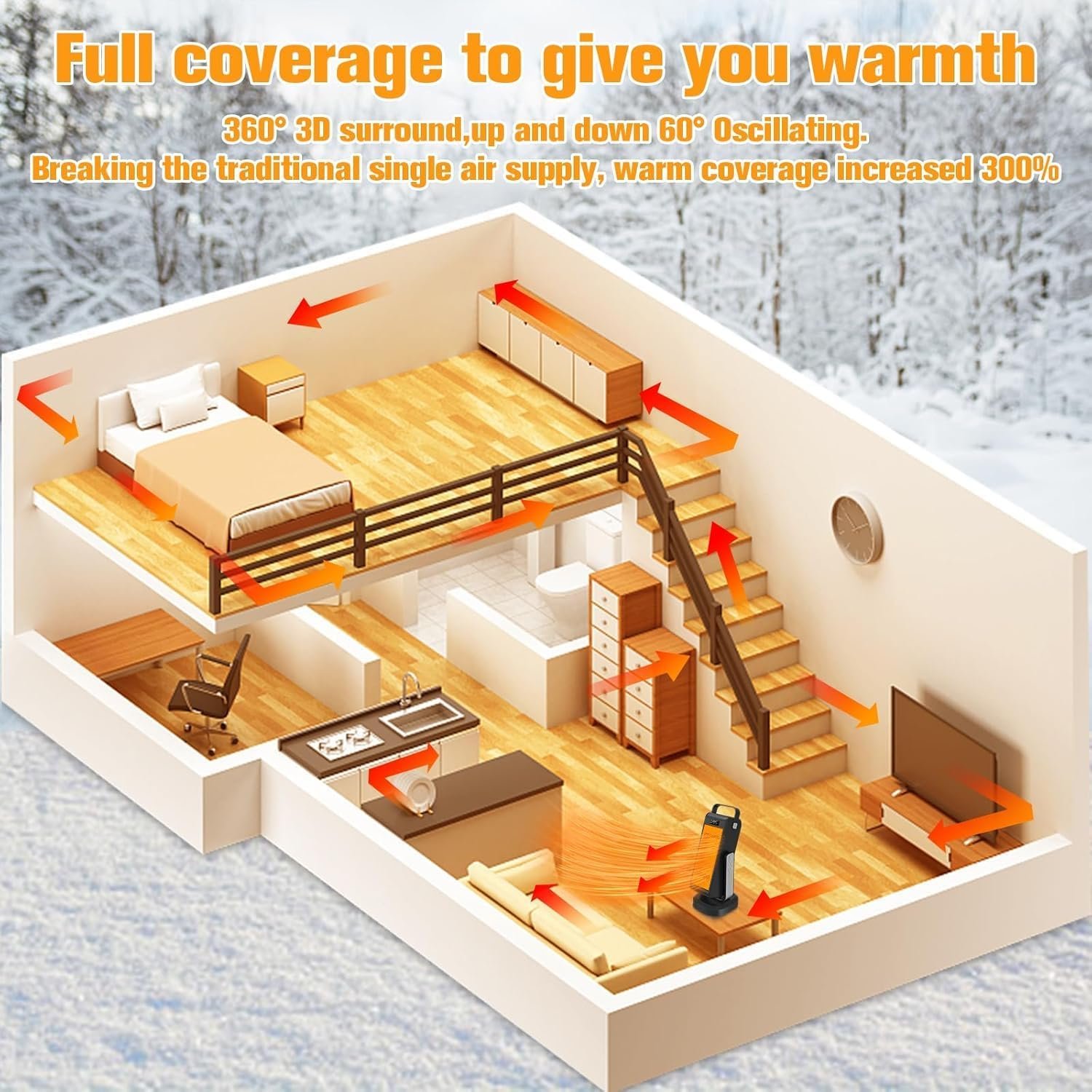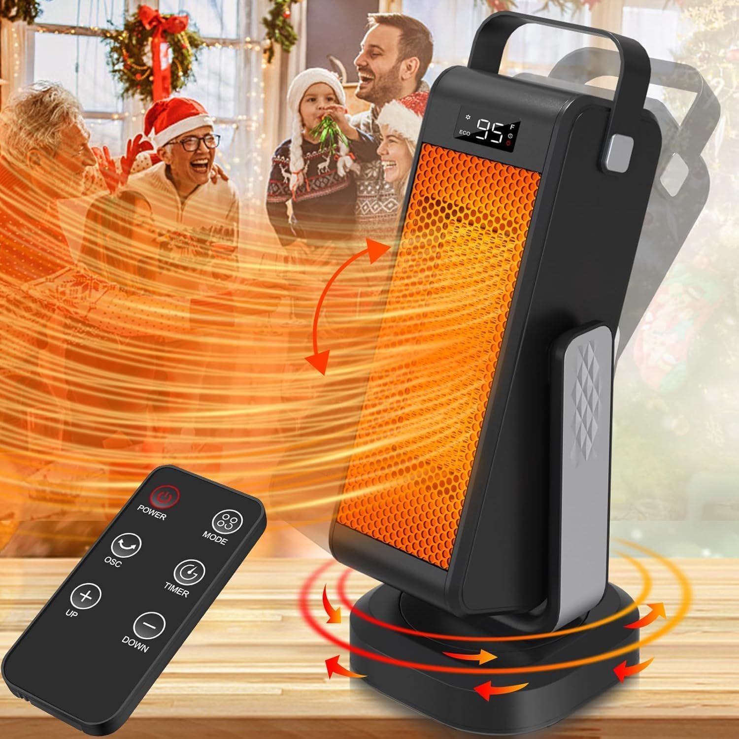 【2024 Newest Upgraded 3D Oscillating Space Heater】Our space heater features a brand-new upgraded design and process, inspired by the cradle concept. It can truly achieve 3D surround heating, oscillating 90 degrees left to right and 60 degrees up and down. Even in the coldest winter, it brings you the ultimate warmth. The upgraded thermostat-equipped space heater can quickly heat up your indoor 3D space in no time