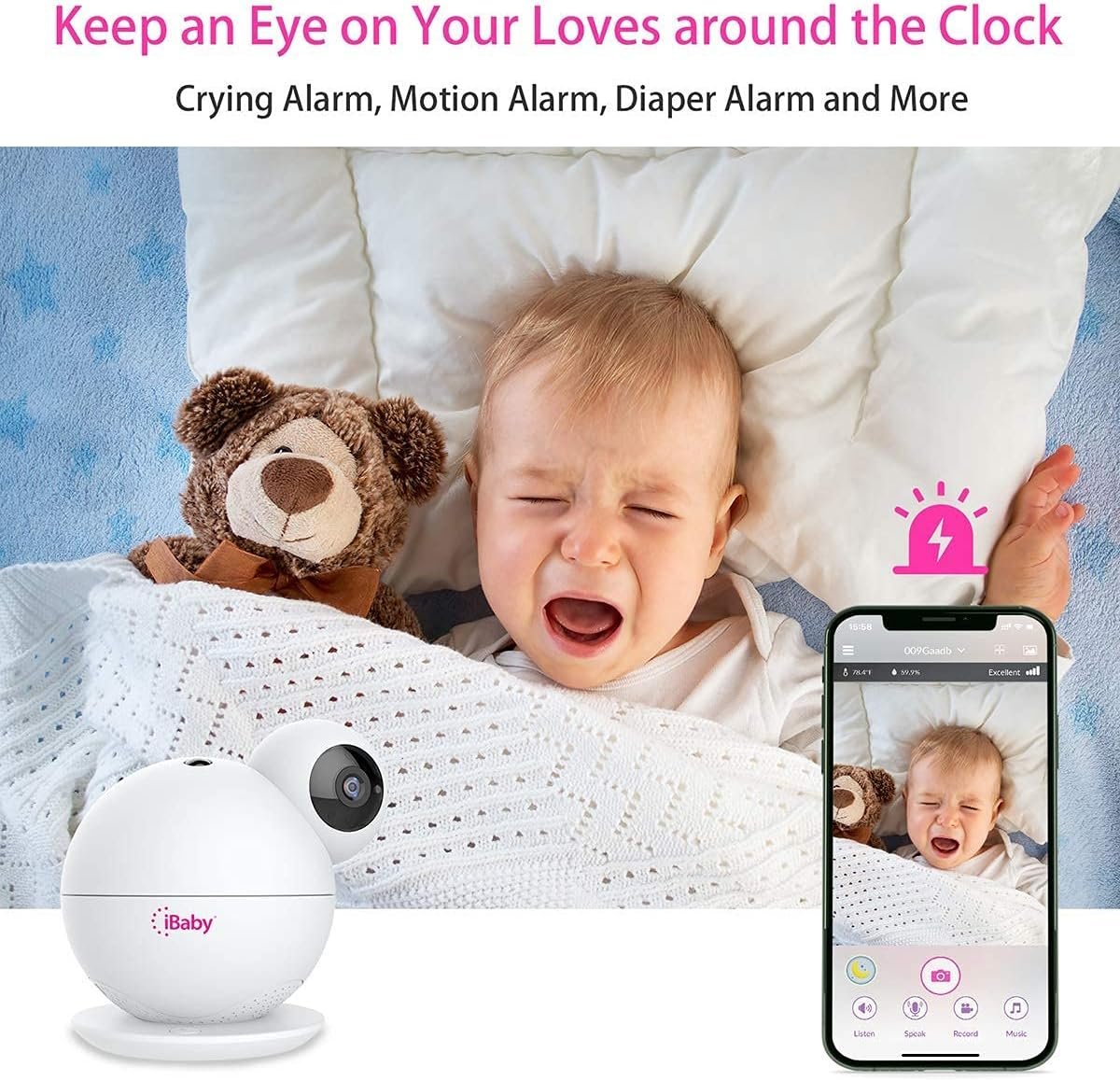 SAFETY ALERTS: M8 Wi-Fi baby monitor has motion and crying alerts, and room temperature/humidity alerts, even you turn off the phone screen, you can receive the notification. iBaby offers you free cloud storage for alert images/videos.