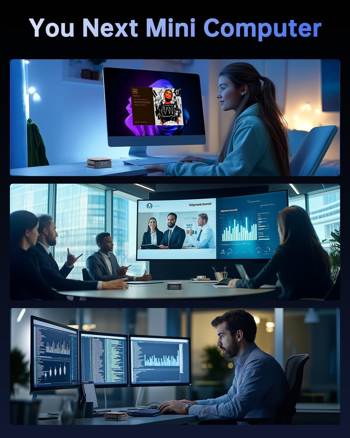[UHD 4K & Triple Screens Display Support]—KAMRUI micro computer is built-in Intel UHD Graphics that ensures faster image processing and featured 4K @60Hz video playback. Support triple display through 2*HDMI 2.0(4K@60Hz) and DP (4K@60Hz) interface for different tasks in the same time,greatly improving the work efficiency and saving unnecessary working procedure,Ideal for visually home entertainment, home office, conference room, etct.