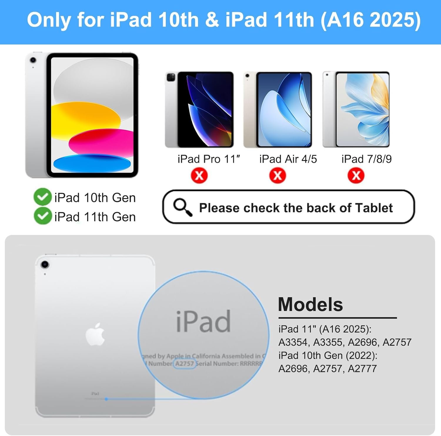 Compatibility: This keyboard case is only compatible with iPad 10th Generation (models A2696, A2757, A2777) and iPad 11th A16 2025 (models A3354, A3355, A3356).